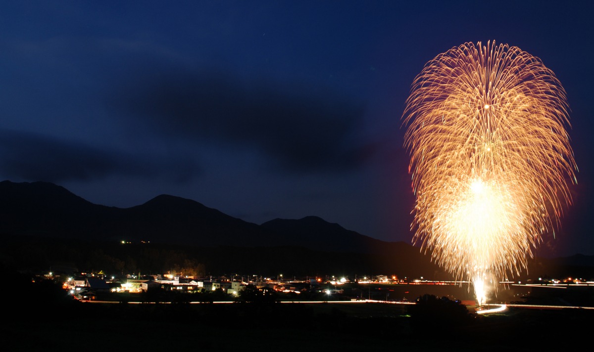 見どころは県北でも珍しい「尺玉花火」が上がるところ。蒜山高原の澄んだ夜空に広がる花火と、間近で見る尺玉の迫力は圧巻です。