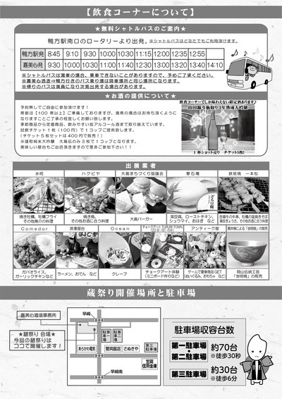 - JR鴨方駅から無料シャトルバスあり(JR鴨方駅南口ロータリー⇔嘉美心酒造)