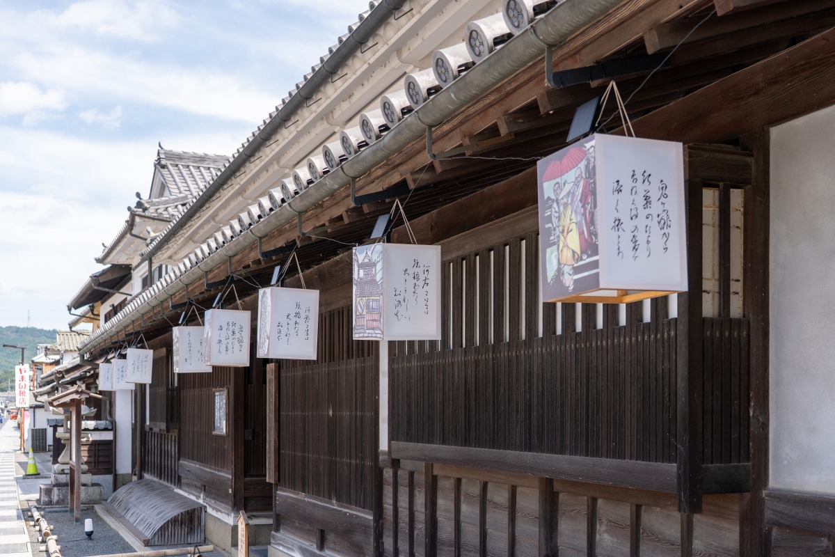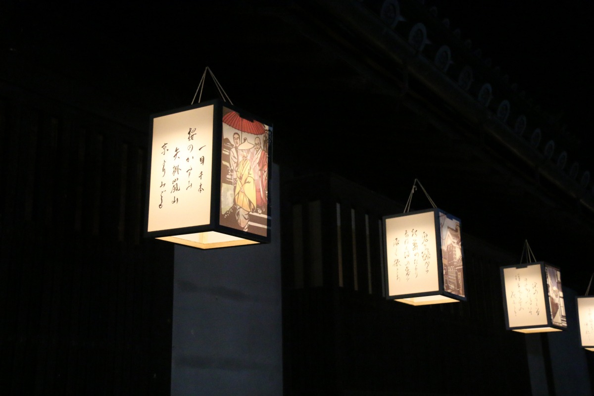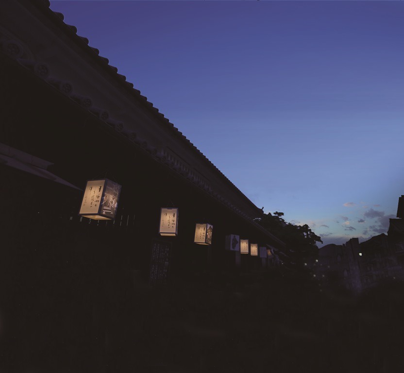 夏の暑い盛りに本陣通り沿いに約150個の行灯が吊り下げられます。ほんのりとした灯りが街並みを照らす光景は旅情を誘います。全国的には「吊り行灯」は珍しく、「床置き行灯」がほとんど。矢掛の街並みには「吊り行灯」が似合い、宿場町の風情を醸し出しています。「矢掛小唄」に合わせて、そろいの編笠、浴衣に着飾った約50人の踊り手が「やかげ小唄おどり」を披露。ゆったりとした手振りのなかから、不思議な時間が紡ぎ出されます。