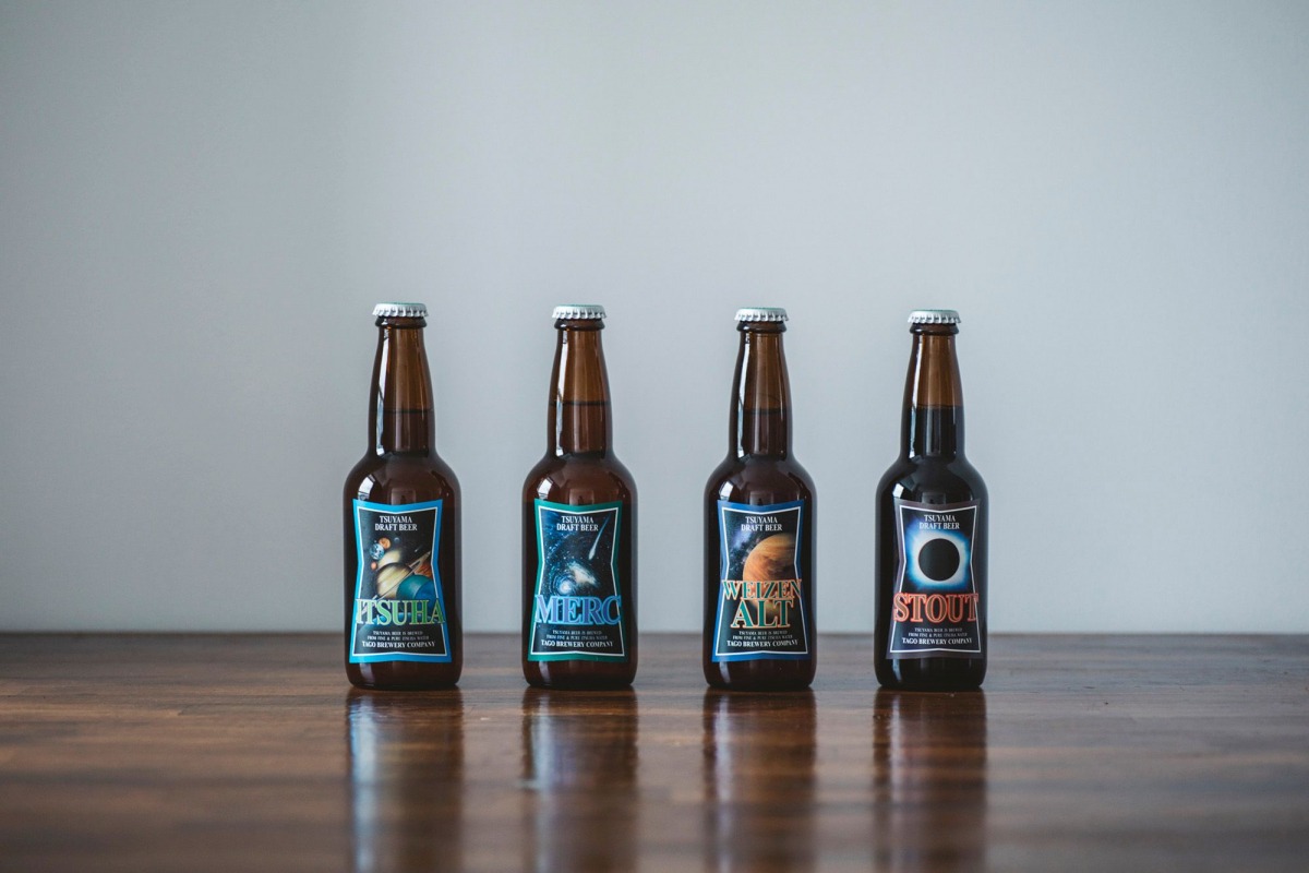 約8種類のの津山ビールをご用意。加茂五葉のおすすめ日本酒も販売。