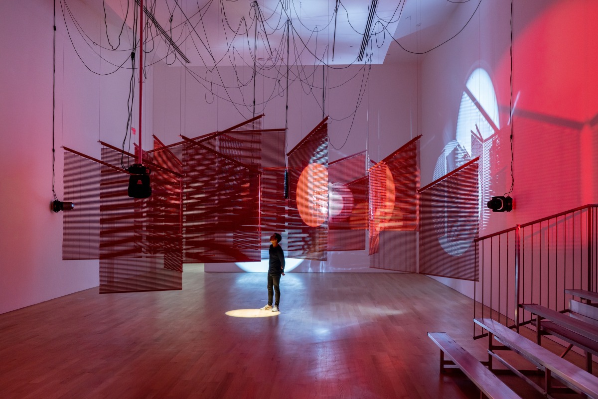 - Haegue Yang Red Broken Mountainous Labyrinth 2008 Aluminum venetian blinds, powder-coated aluminum hanging structure, steel wire rope, moving spotlights, DMX controller, spotlights Dimensions variable Courtesy of the artist and Greene Naftali, New York In