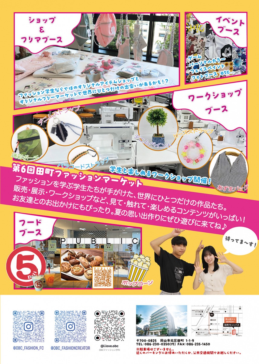 専門学校岡山ビジネスカレッジのファッションクリエイター学科の学生たちが、ファッションの魅力とサスティナブルを発信する毎年恒例のイベントとして「田町ファッションマーケット」が開催されます。今年のテーマは『SUMMER★PARTY』。