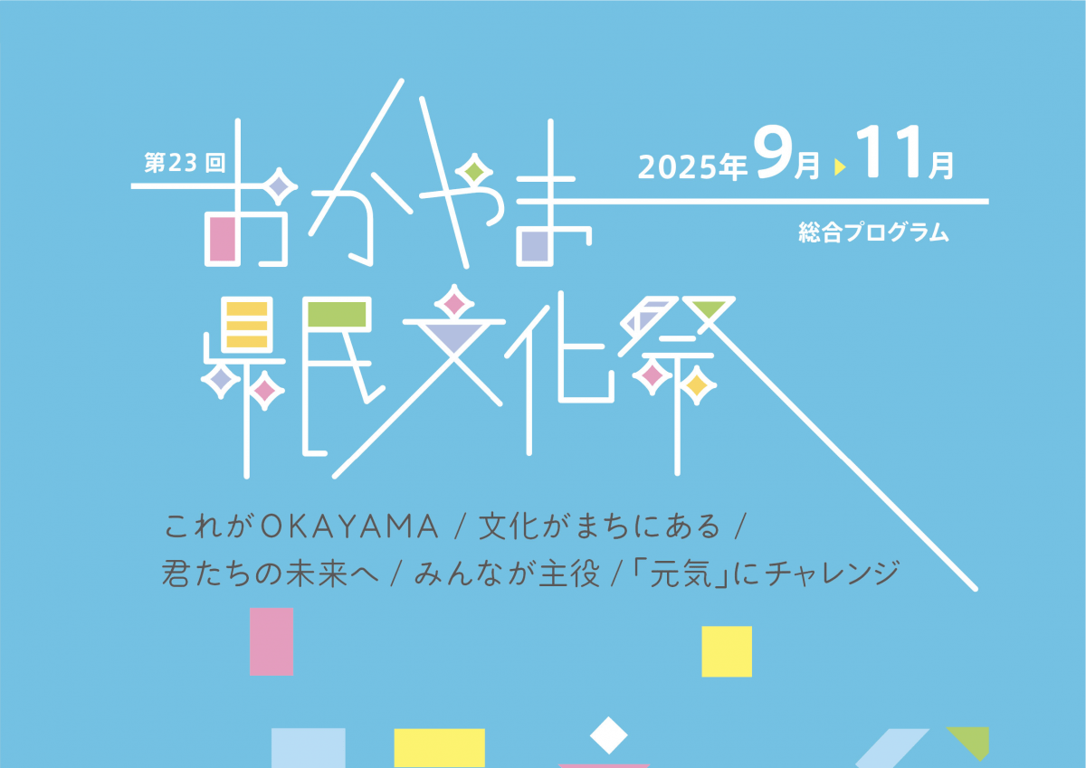 おかやま県民文化祭とは、県民が文化に親しみ交流するとともに日ごろの文化活動の成果を発表する場として、県内各地でさまざまなプログラムが開催される“文化の祭典”です。岡山県、岡山県文化連盟が主催となり、県民の文化への関心の高まりや参加団体の交流とネットワークの形成を推進することを目指して開催されます。