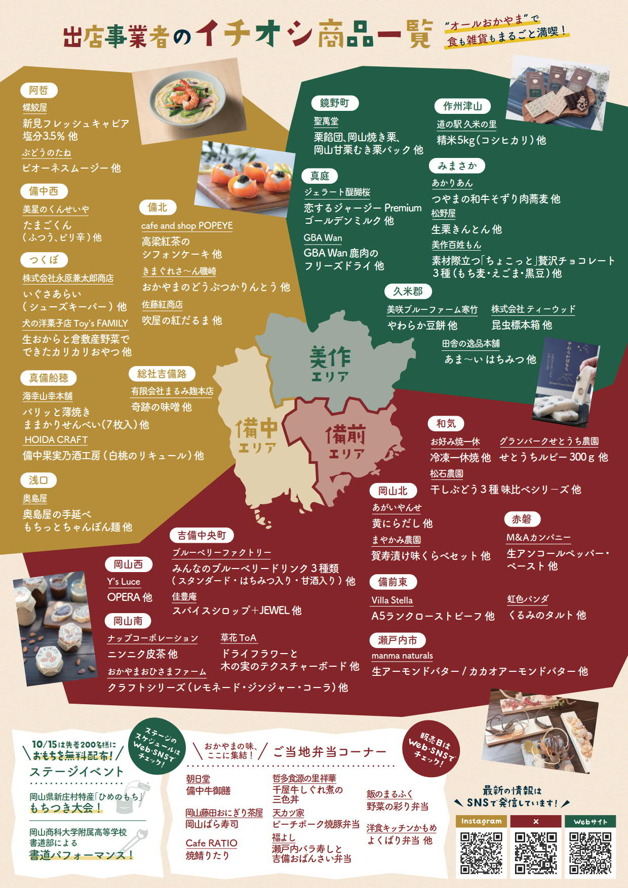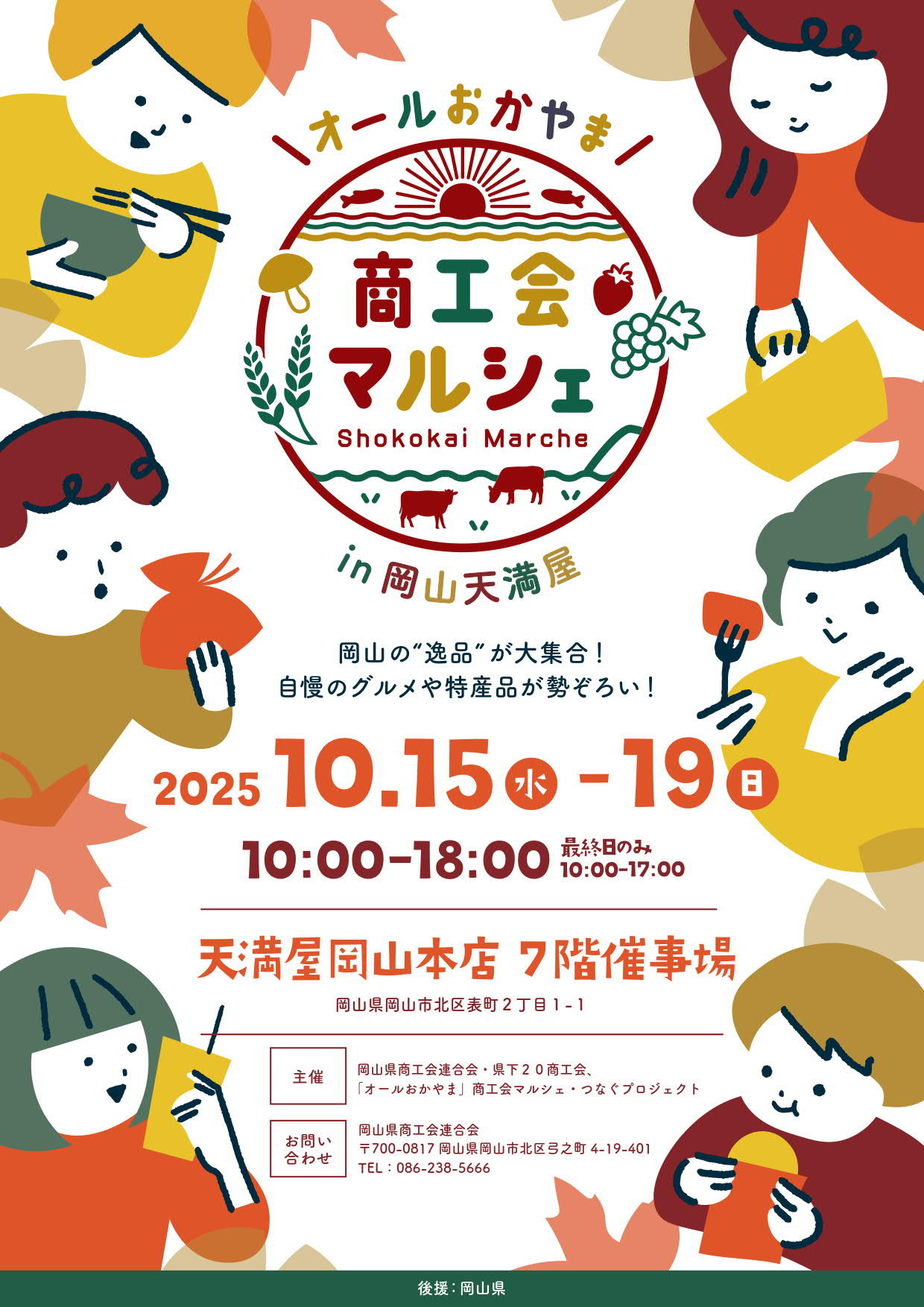 - 086-238-5666(岡山県商工会連合会 県下20商工会「オールおかやま」商工会マルシェ・つなぐプロジェクト)