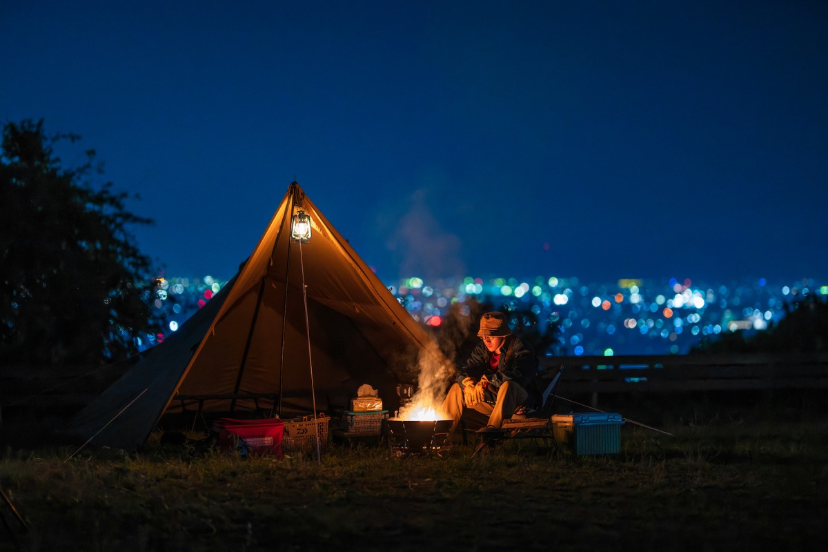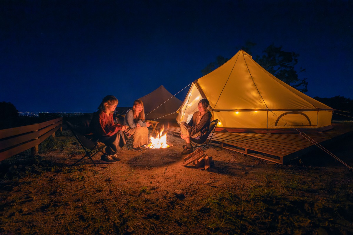 ひらけた眺望と夜景が見えるグランピング&キャンプ場