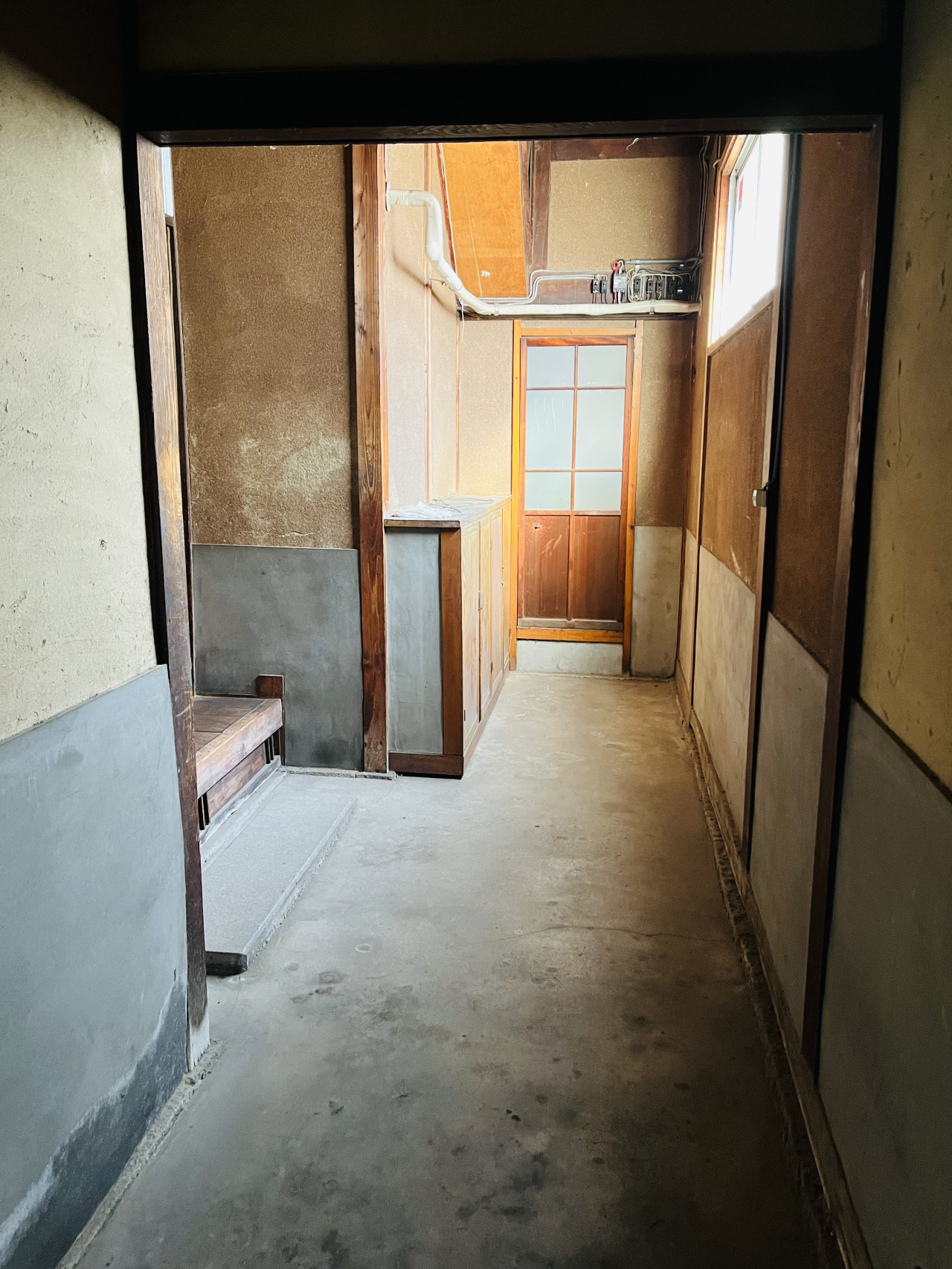 暖簾をくぐれば、当時の面影を色濃く残す「店舗部分」と、奥へと続く開放感あふれる「通り土間」が広がります。2階へ上がれば、この家を100年支え続けてきた「太く立派な梁」が剥き出しの力強さで見守り、建築物としての力強い骨格を肌で感じることができます。