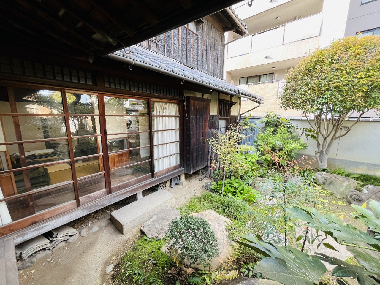 奥に広がる約20坪の坪庭には、季節の植物が息づき、美しい縁側がそれを切り取ります。