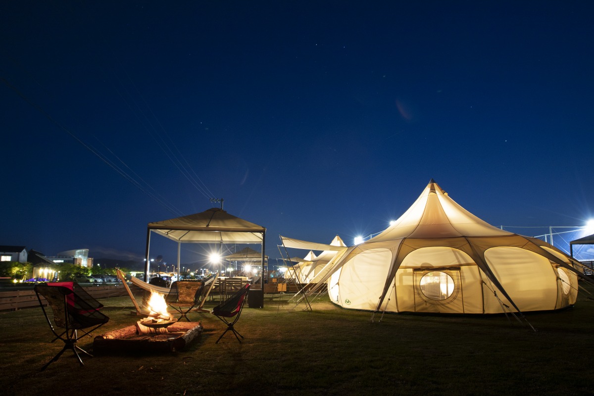 温泉が併設しているキャンプ場なので、他のキャンプ場とは一味違ったロケーションでの撮影が可能です。