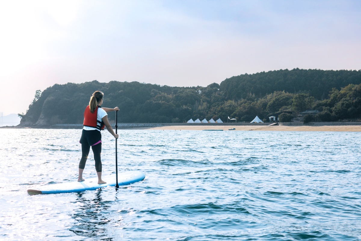自然が多く残っており、森林浴のシーン、展望台からのサンセット、瀬戸大橋など、ロケーションも豊富です。SUP、カヤック、テントサウナ、船釣りといったアクティビティアイテムを取り揃えております。