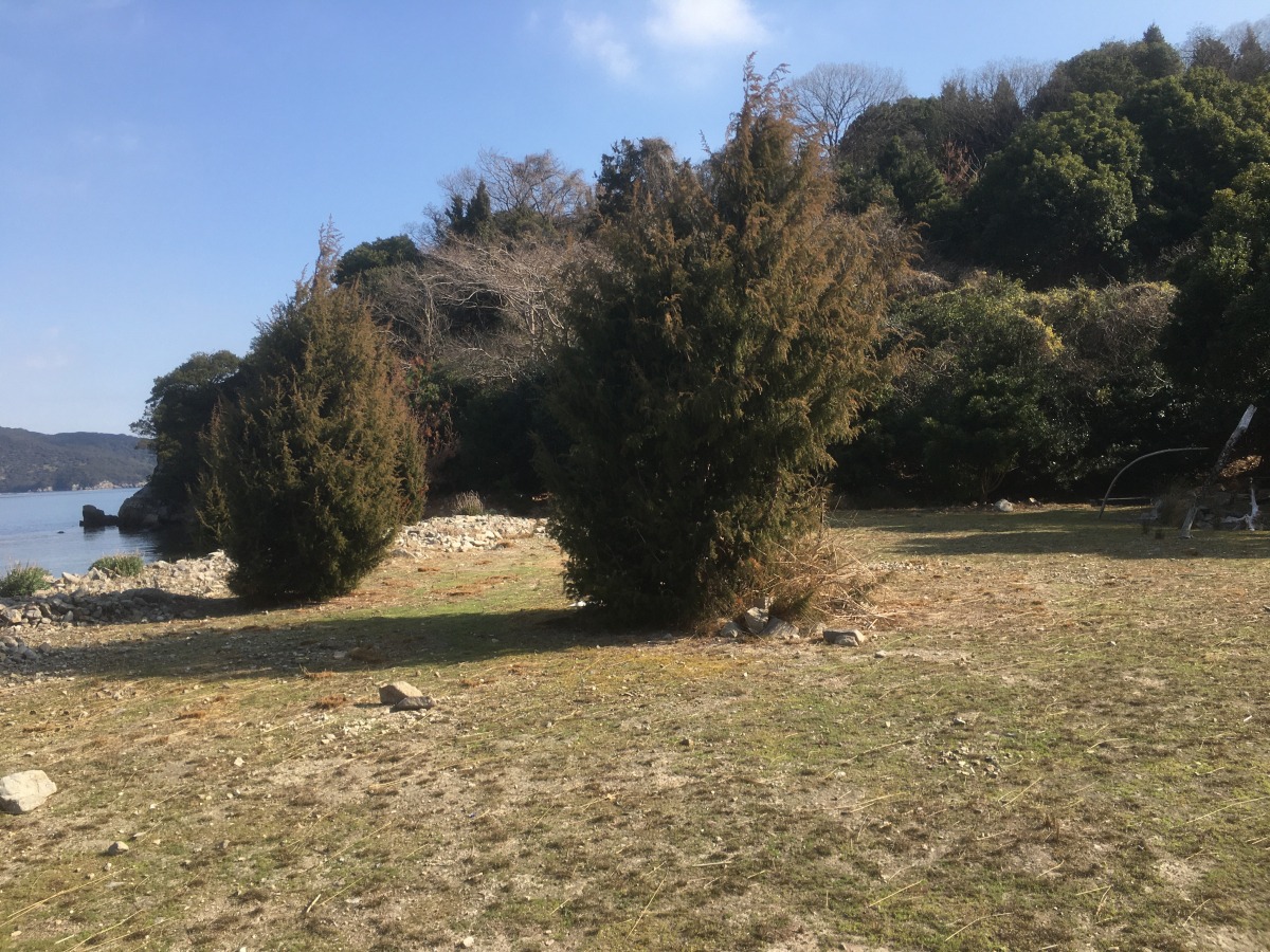 鶴嶋の桟橋側にある広場はキャンプ場として提供。対岸の鹿久居島内にある古代体験の郷まほろばの高床式住居でも宿泊可能