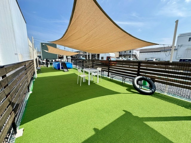 カフェ・人工芝スペース・イベントスペースを備えた、開放感溢れるロケーションです。