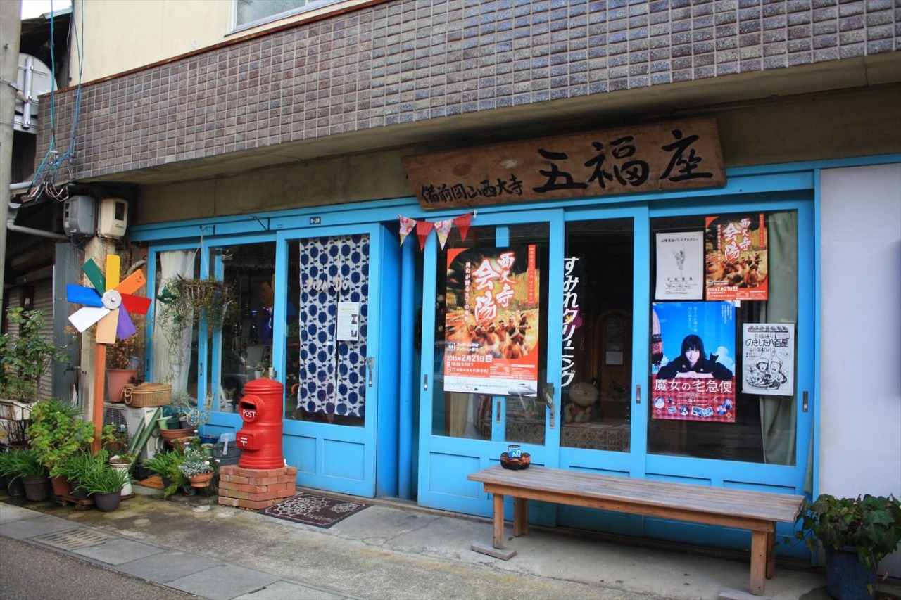 はだか祭りで有名な西大寺「観音院」の境内から少し北に歩くと、今ではめずらしい看板建築(※)の商家が建ち並び、昭和の面影を残す、通称“五福通り”が現れます。