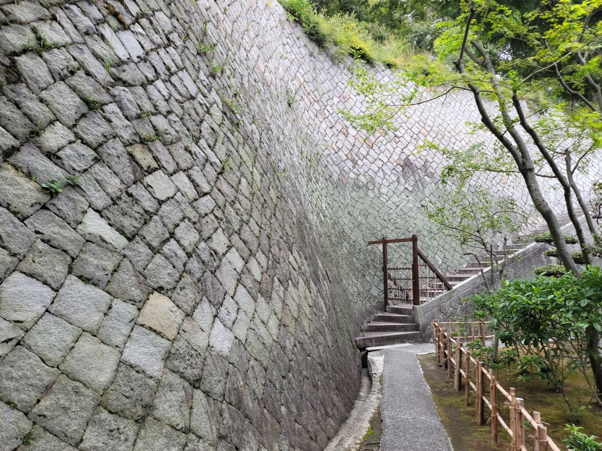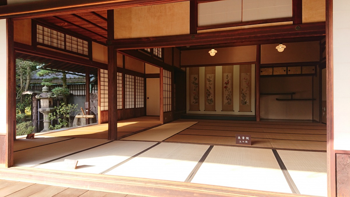 敷地の東側に長屋門と御成門を構え、中央に南北に長い主屋が建ち、主屋の北に土蔵群が整然と並んでいます。庭園には茶室が点在し、平庭部を海に見立てた枯山水庭園として、築山や石組及び露地を巧妙に配しています。