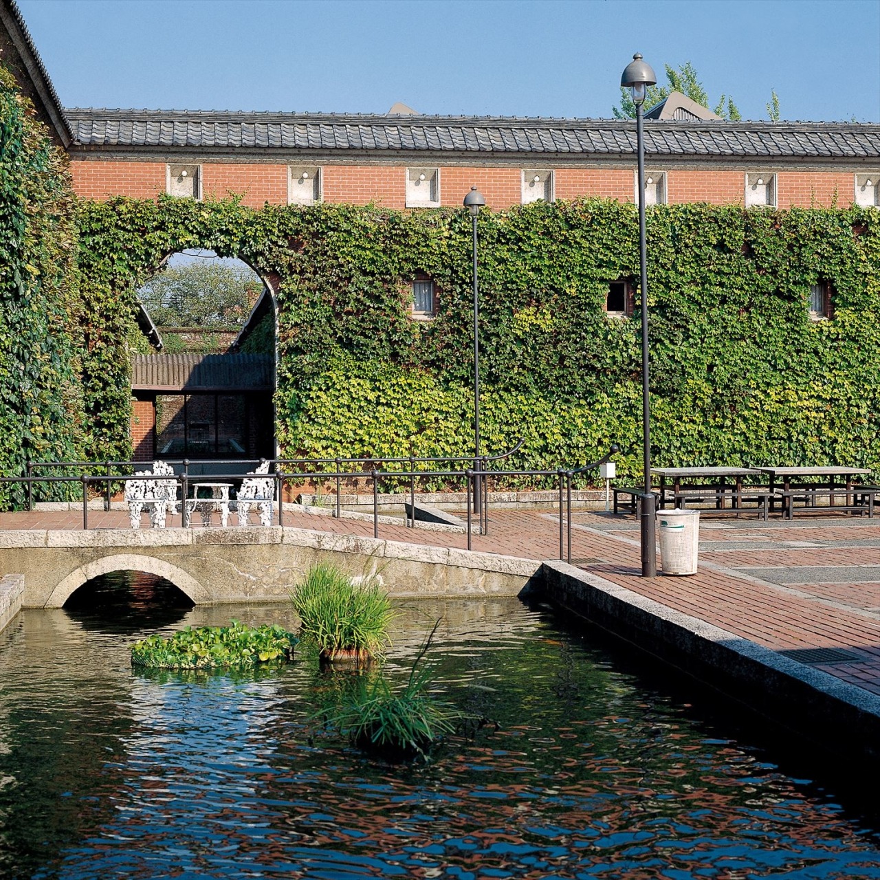 赤い煉瓦と蔦の葉が印象的な倉敷アイビースクエアは、明治時代に倉敷紡績の工場として建てられ、今は改装してホテルになっている。蔦の広場という意味の2通り、2階までの低い建物に囲まれ、市民の憩いの広場などが広い敷地内にある。