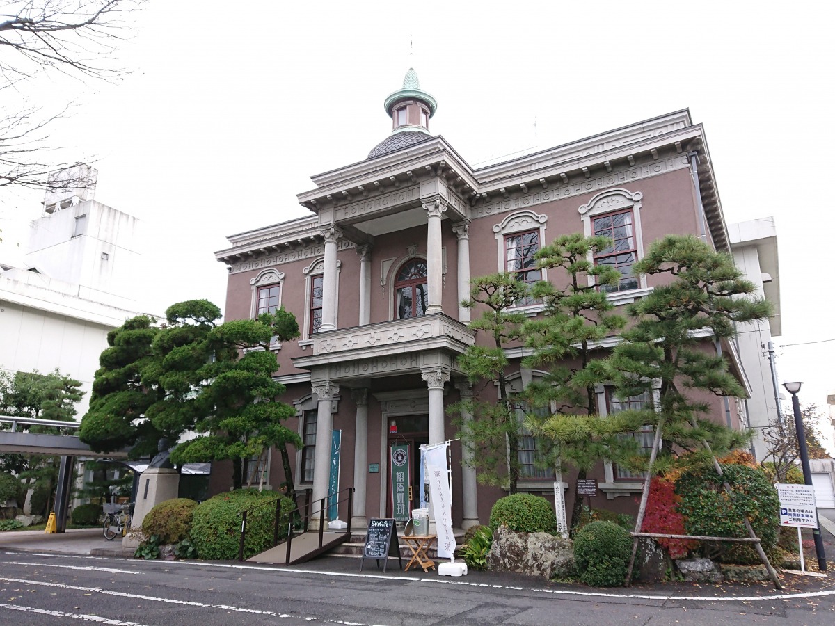 1917(大正6)年完成の中島病院旧本館。木造2階建てで、正面にドームを配し、屋根や窓の細かい装飾が特徴の欧風建築。カフェやギャラリーが併設されており、ノスタルジックな雰囲気を楽しめる。