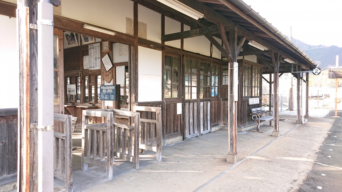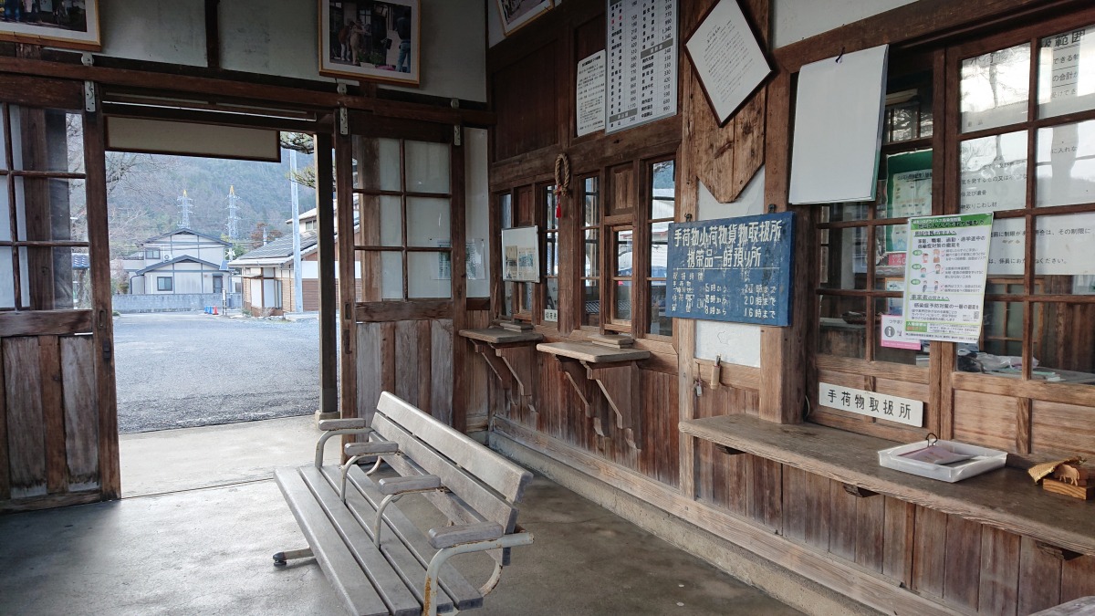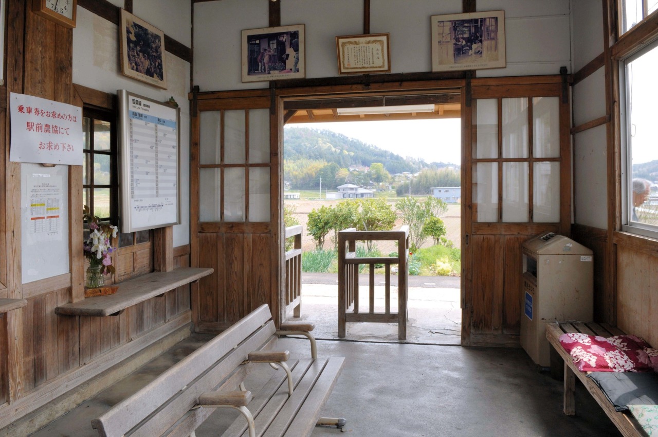駅舎の開口部は全て木製。改集札口も木製。内部もほとんど手を加えられておらず、昔の姿をよくとどめている。周辺の田園景観も美しい。