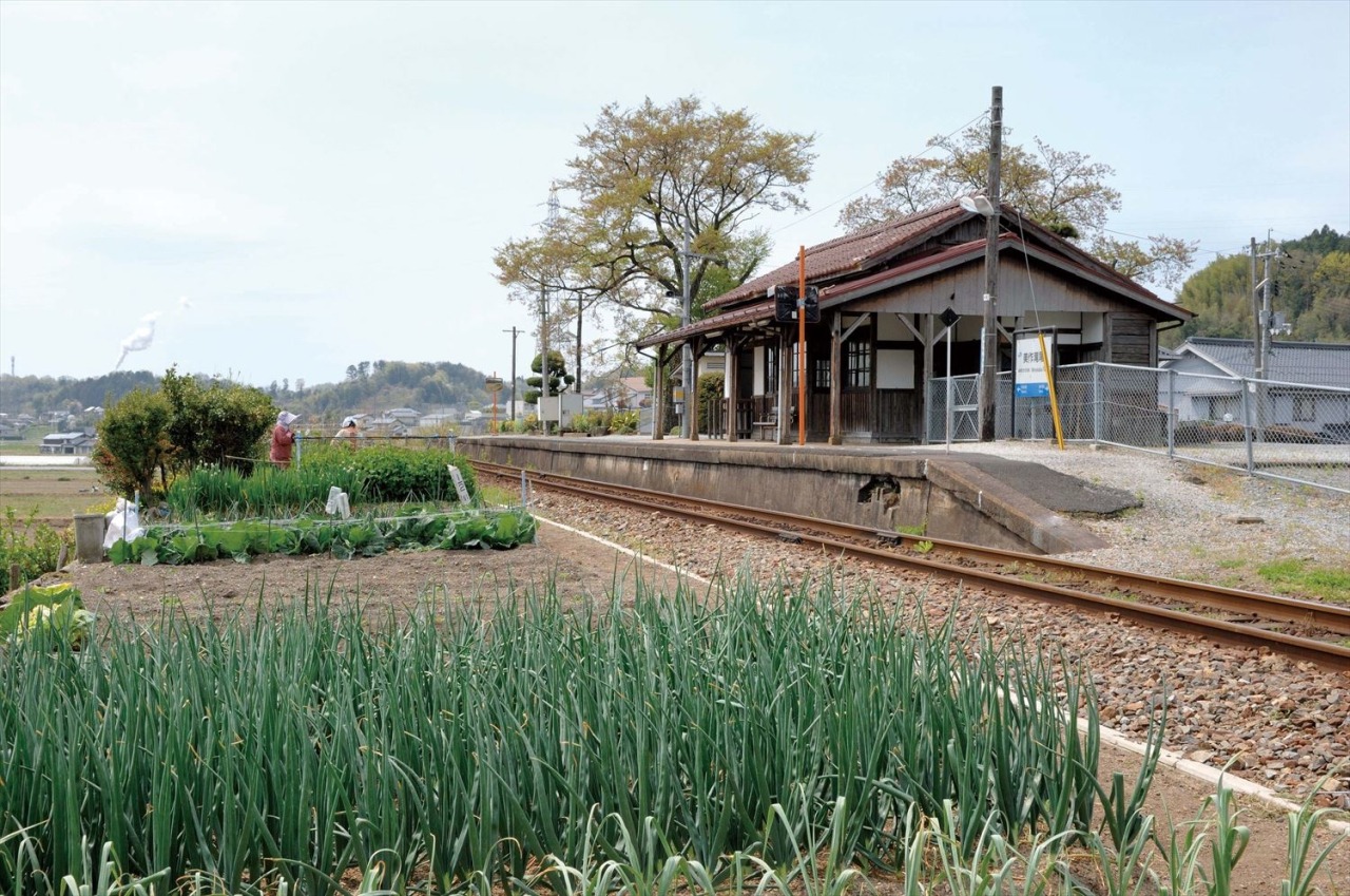 のどかな田園風景とレトロな駅舎が気分を盛り上げる