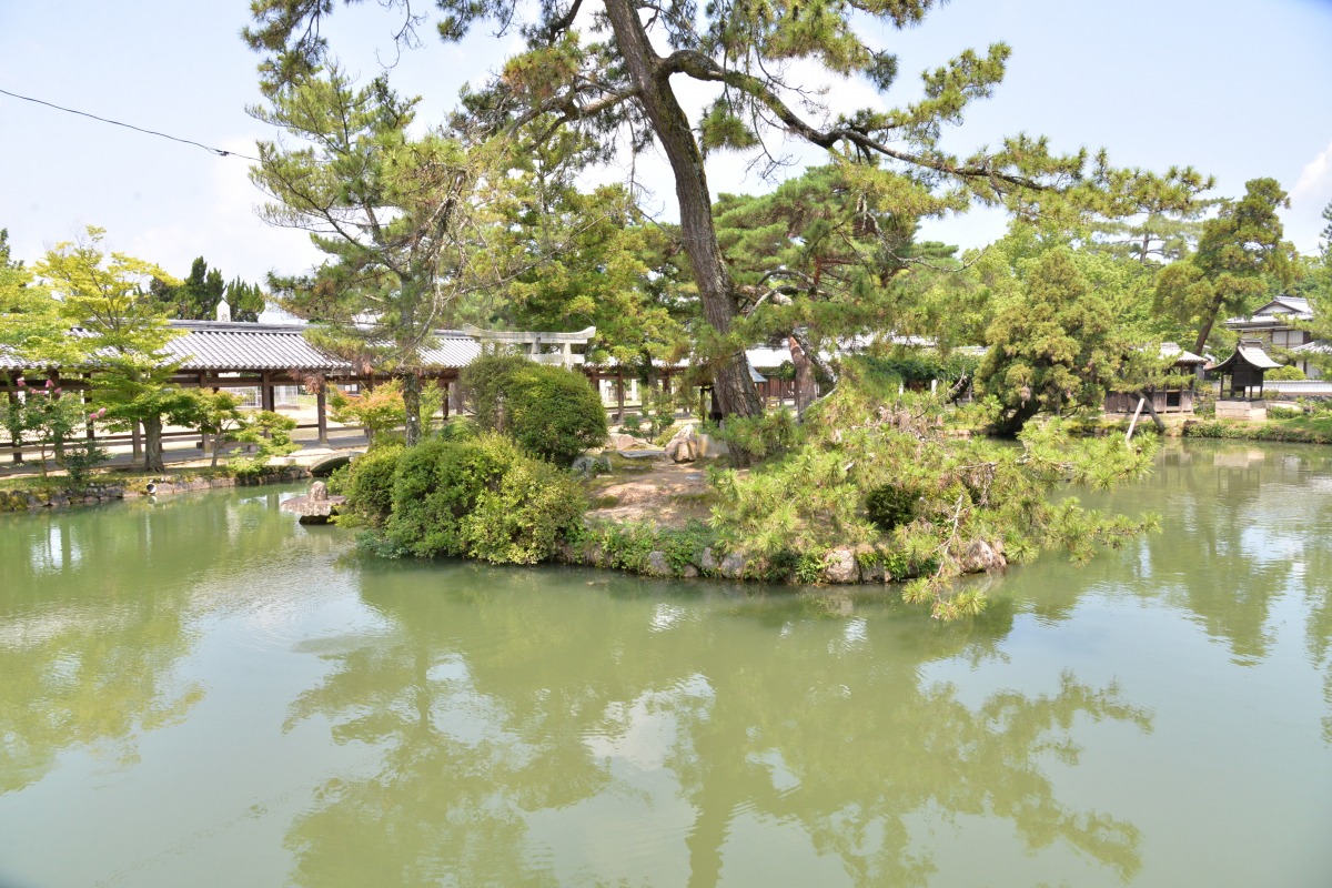 「総社」は,国中の神社を巡拝する慣しの不便をはぶくため,平安末期に国府の近くに造られるようになったもので,備中国の総社は324社の神々を1つに祀った社です。前庭の三島式庭園は古代の形式を今に伝えており,長い回廊が美しい影を水面に映します。拝殿には多くの絵馬が奉納されており,円山応挙や大原呑舟といった有名作家の絵馬も奉納されています。