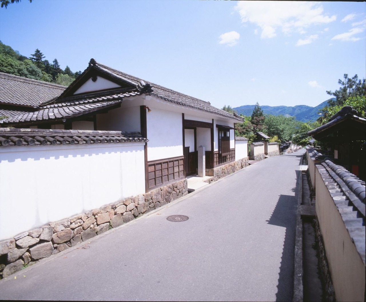 昭和49年には岡山県のふるさと村に、昭和52年には文化庁から国の重要伝統的建造物群保存地区に認定されました。今も格式ある門構えの武家屋敷が250mに渡って立ち並んでいます。路地の両脇には白壁の長屋門や土塀が続き、当時の生活の面影が色濃く残っています。
