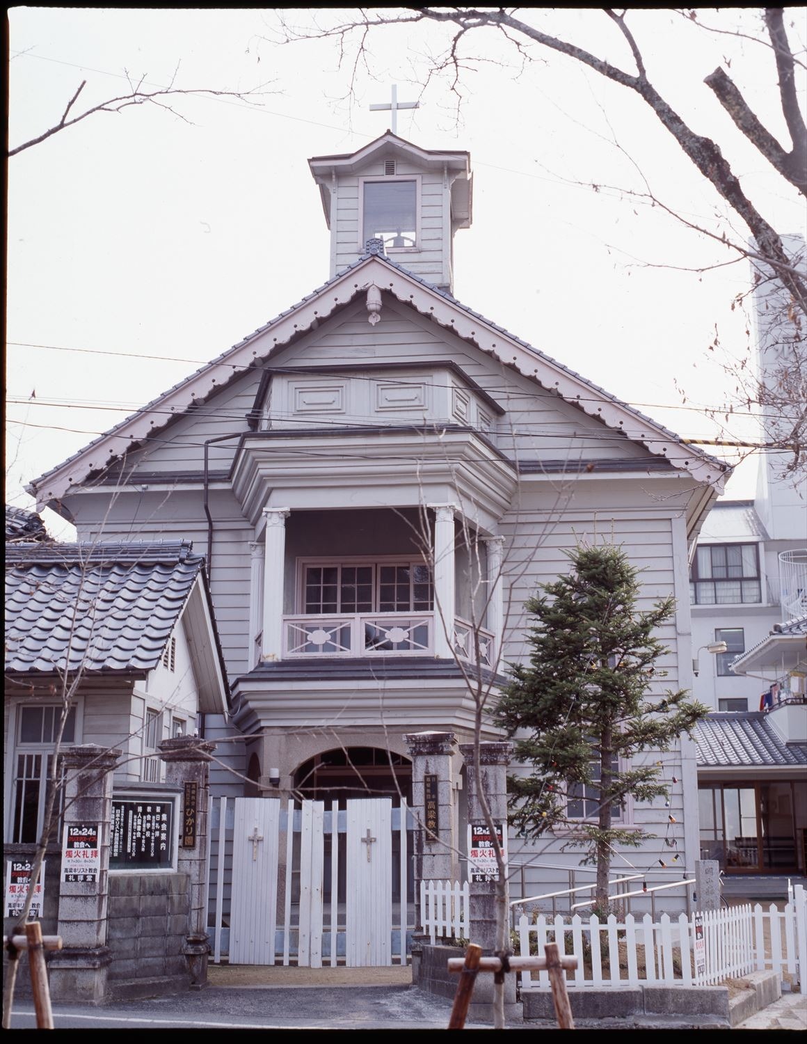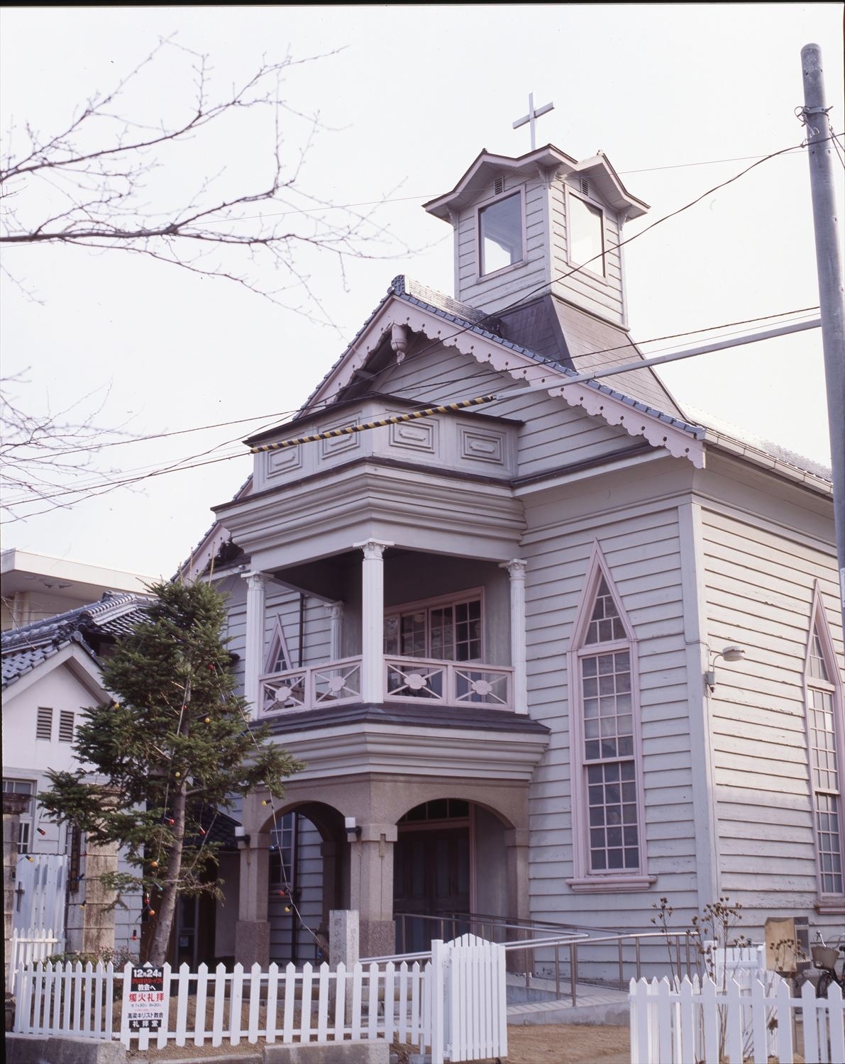 明治22年(1889)に建築された現在県下では最古の教会堂で、キリスト教伝導の跡をたどることが出来るだけでなく、明治洋風建築としても貴重なものです。 県下初の女学校・順正女学校を創設した福西志計子(しげこ)や社会福祉事業家の留岡幸助(とめおか こうすけ)らを育てた教会でもあります。