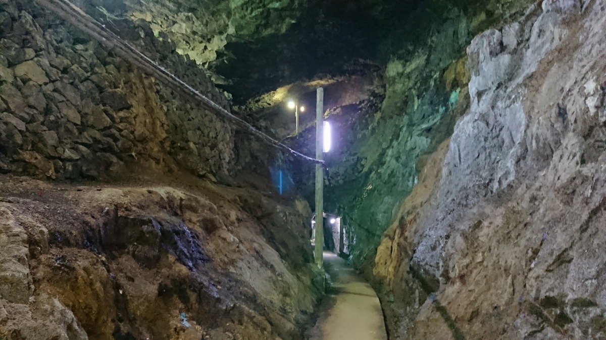 この坑道は江戸時代から大正時代まで採掘されていたもので、主に黄銅鉱、硫化鉄鉱を産出していました。昭和53年に復元され、坑内を見学できるようになっています。冒険心をそそる神秘的な坑内は、年中15度前後と天然のエアコンが効いています。吉岡(吹屋)銅山は、大同2年(807年)に発見されたと伝えられ、古書に備中の産物に関する記載があり、吹屋の銅山としての記録は、戦国時代尼子氏と毛利氏の争奪戦以来、江戸時代初期一時、成羽藩の支配下にありましたが、大部分の間は、天領幕府直轄地で代官の支配下で稼いでいました。