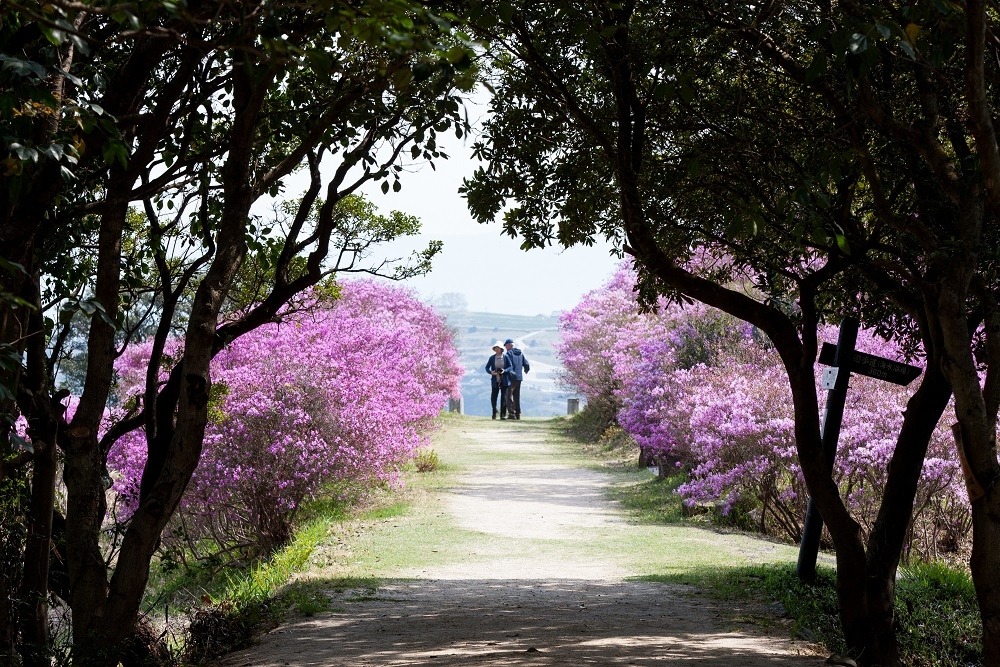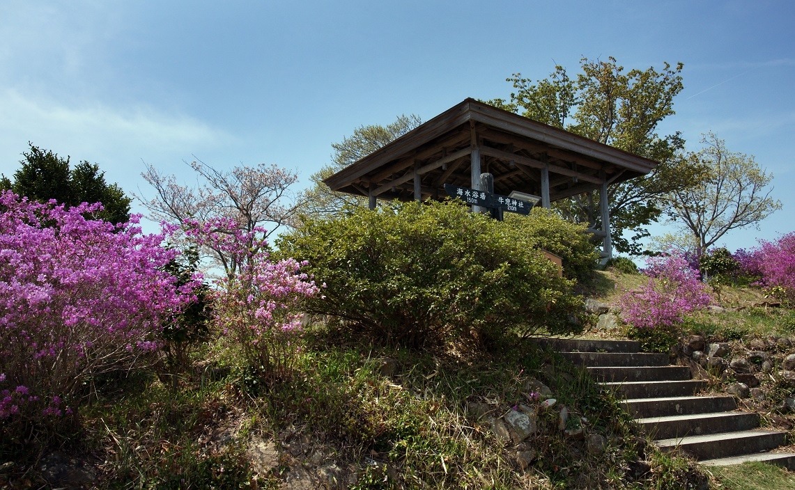 参道途中には東屋が設置され海の眺望が良い亀山公園がある。