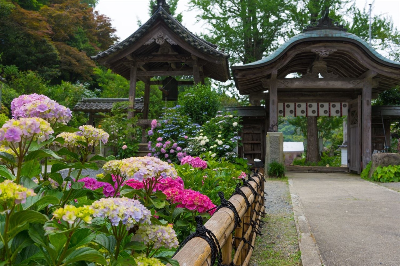 あじさい寺として有名で、「山陽花の寺二十四か寺」の第十三番札所となっています。築400年の本坊では愛染明王を拝観でき、見事な日本庭園とともに、藩主の使っていた部屋、京都御所勅使の駕籠など、多くの寺宝を見ることが出来ます。また予約すればいただける、「御寺料理」もおいしいです。
