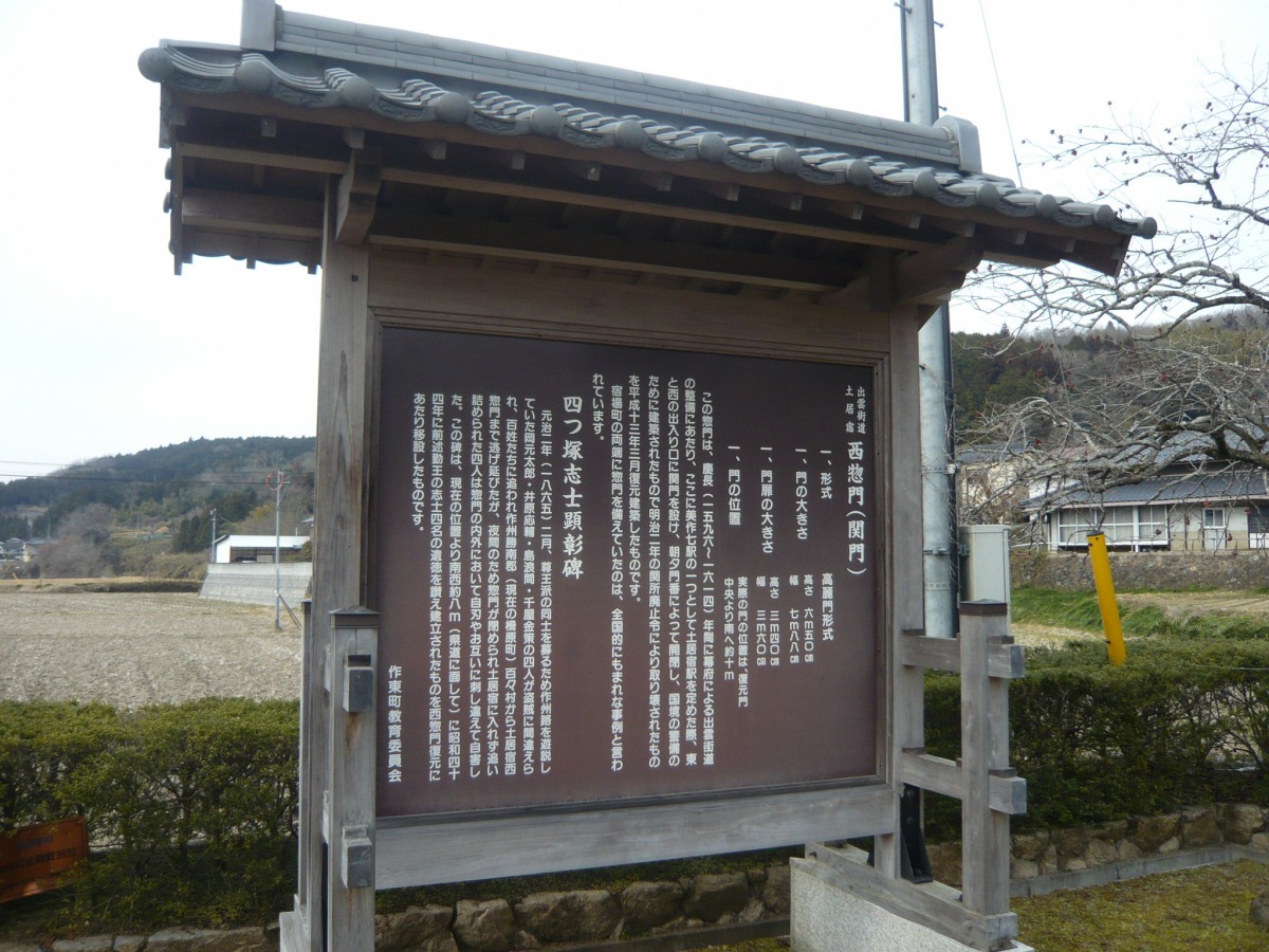 慶長年間、幕府による国境の警備を目的に建てられ、明治2年に関所廃止令により取り壊されたものが平成13年に復元されました。門の造りは、高さ6m50㎝、幅7m88㎝の高麗門形式。宿場町の両端に惣門を備えていたのは、全国的にもまれな事例といわれています。