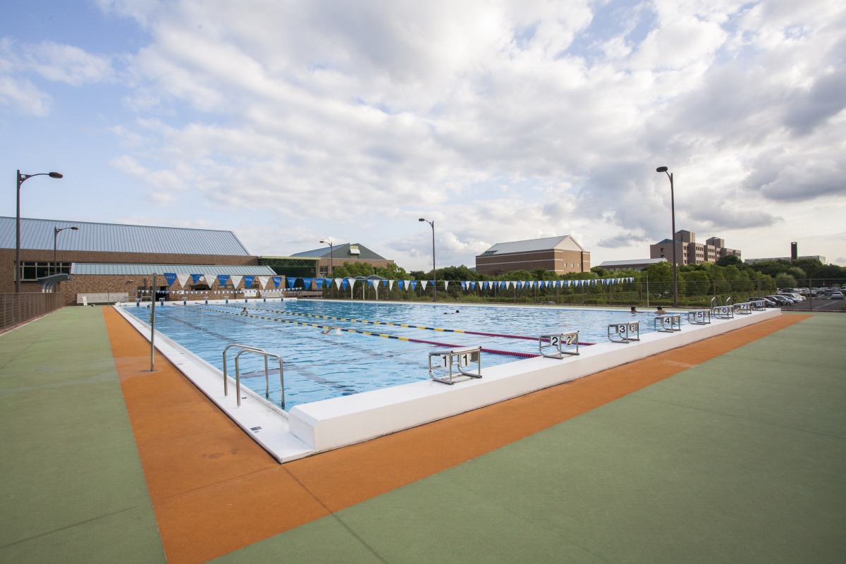 緑にあふれた構内には、校舎・講堂・図書館ほかグラウンド・プールなどの体育施設があります。