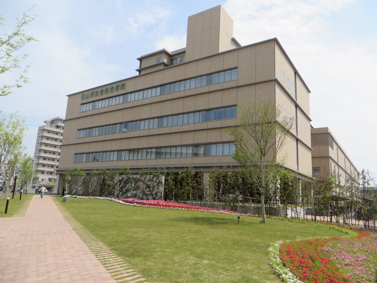 2016年新築の35診療科を擁する急性期の総合病院であり、12の手術室、ICU、HCU、救急センターも岡山有数の規模である。現在、未使用の病棟もある。岡山駅から徒歩9分、南側の病室からは眼下に岡山駅に出入りする新幹線、在来線が一望でき、遠くは市街地を、北側の病室・デイルームからは半田山などの山並みも美しい。岡山県総合グラウンドも近く、市街地にありながら環境に恵まれている。岡山駅西口は再開発され、近代的な風景になっており、また、近くには昭和の風情を残した奉還町商店街がある。
