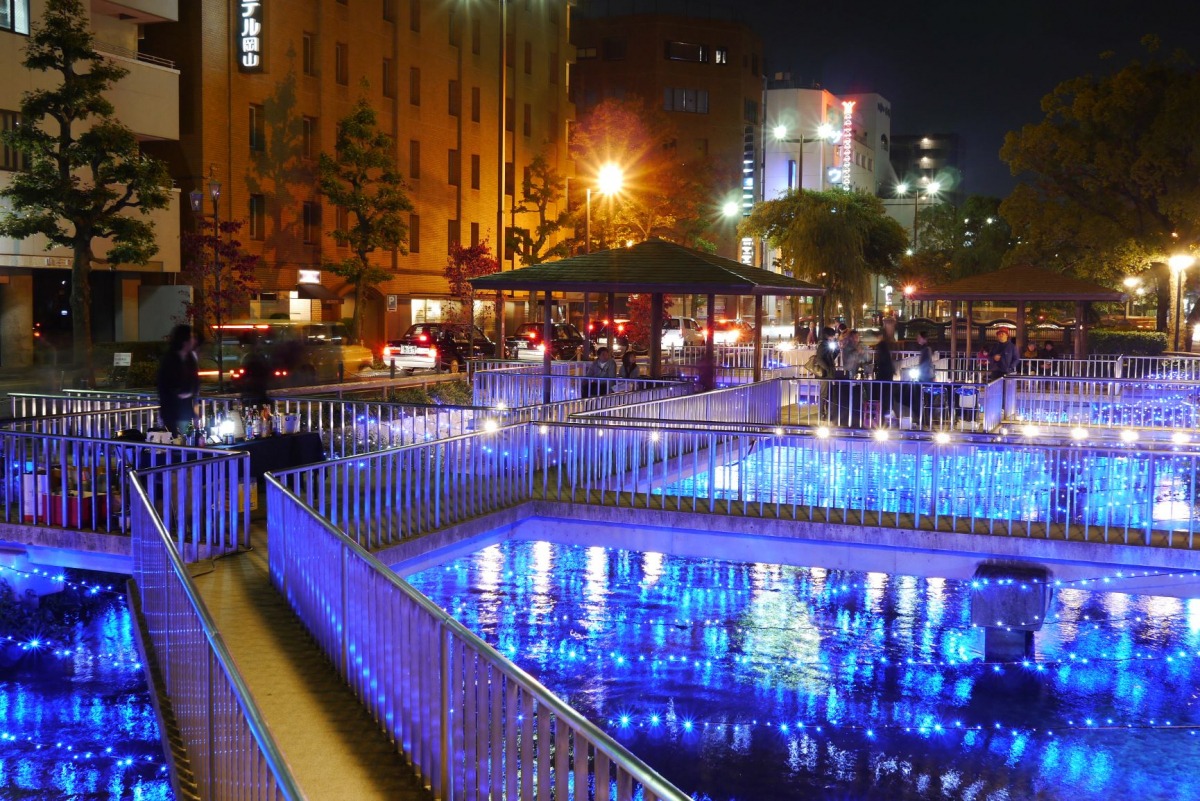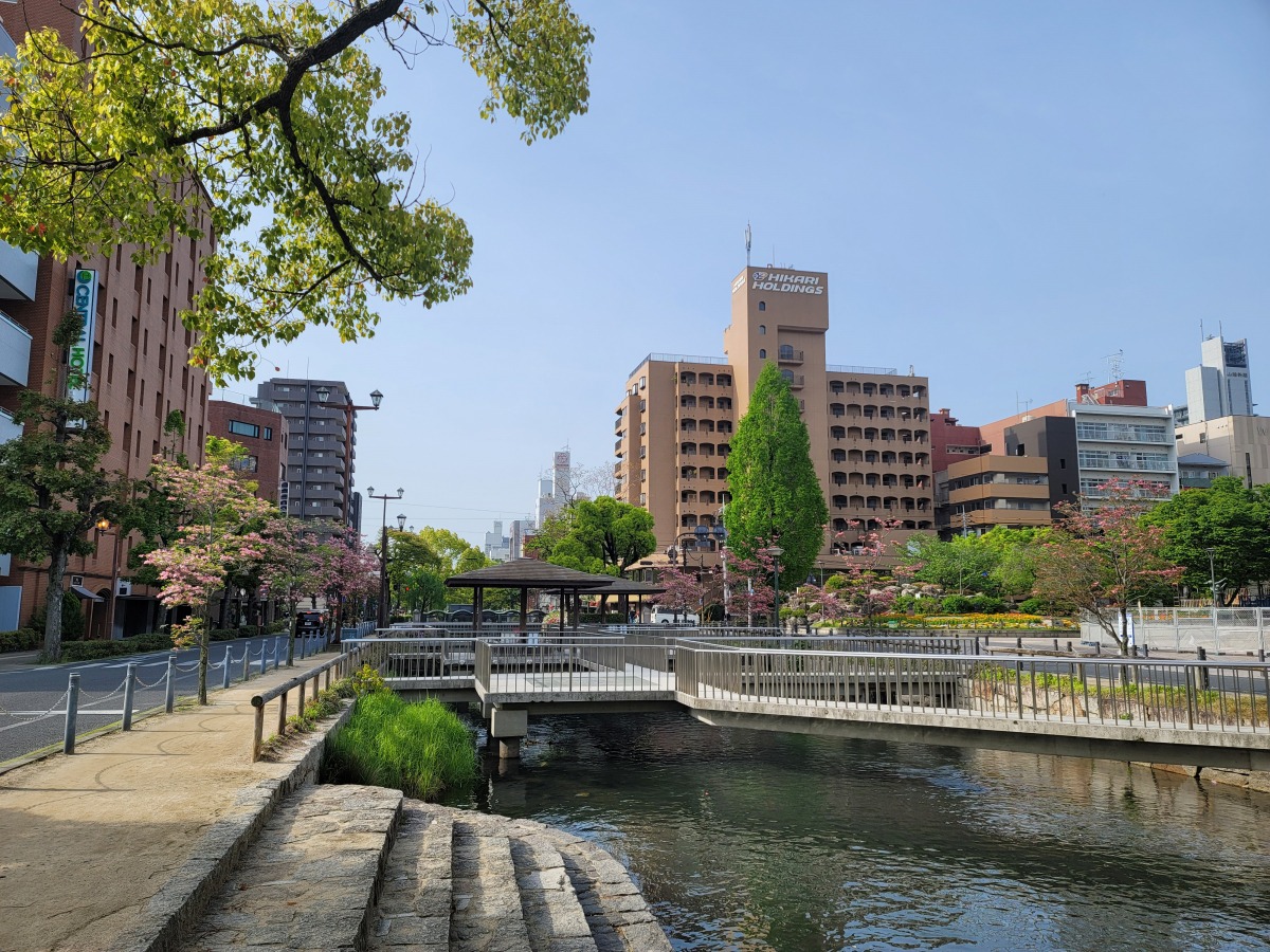 岡山市中心部を南北に流れる西川沿いの公園。公園内には約100種類の樹木約3万8千本が植樹され、春の芽生えから森林浴、秋の紅葉や草花の花壇など四季の移り変わりが楽しめる。
