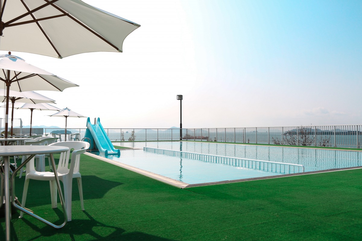 鉄筋コンクリート3階建てで、敷地内にはプールが有り、夏には庭でバーベキュー営業をしています。