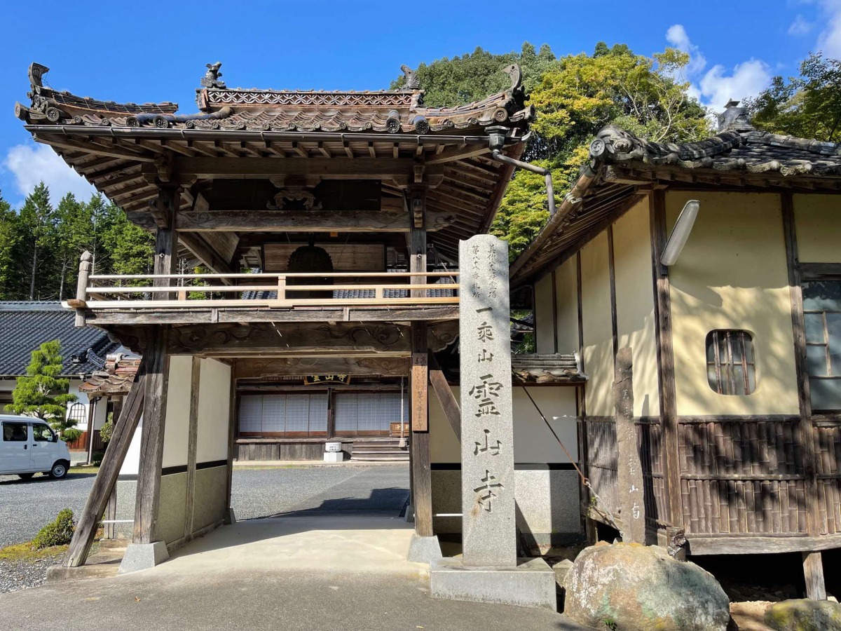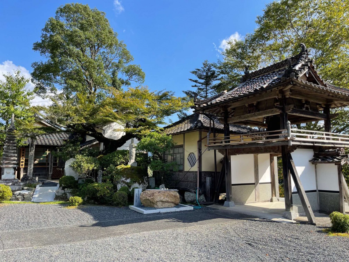 旧竹山城主新免家、宮本武蔵生家平田家代々の菩提所。山門(鐘楼門)を入ると正面に本堂と客殿、庫裏、東側に大師堂、茶室が建つ。境内には、県天然記念物の大モミジがある。