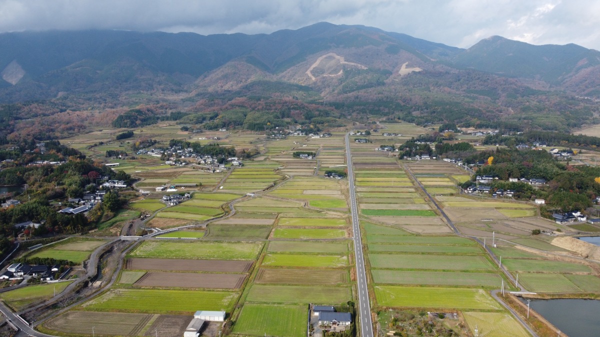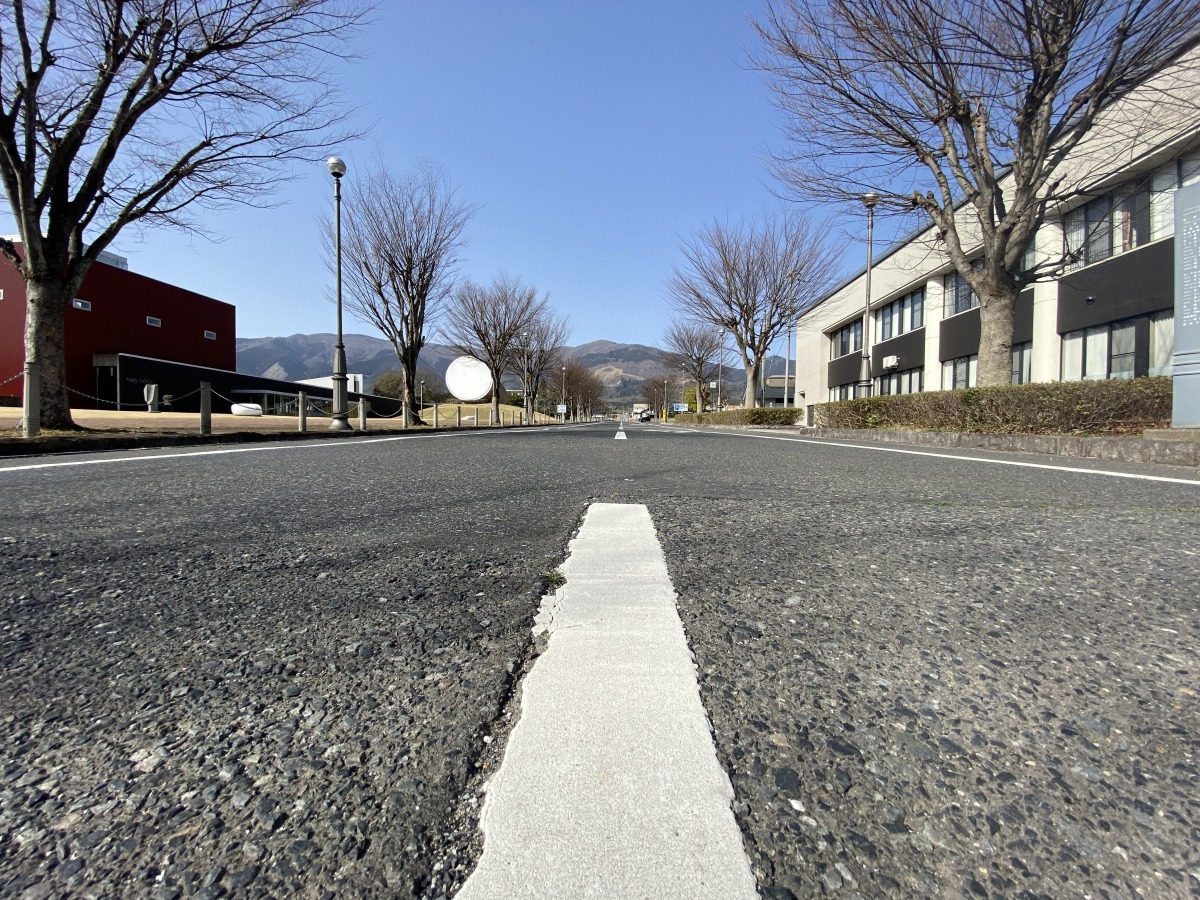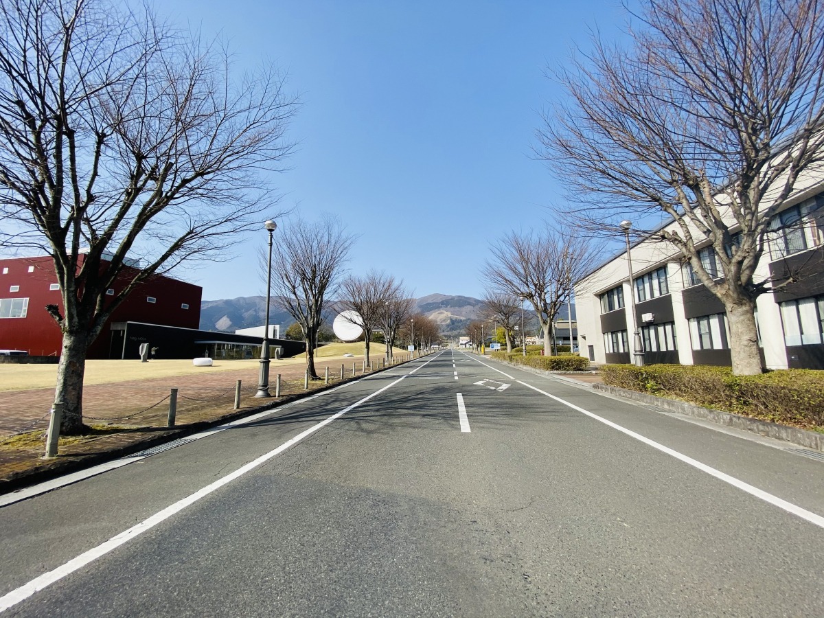 奈義町現代美術館から那岐山へとまっすぐに伸びる「奈義町シンボルロード」は、美しい那岐山を一望することができます。シンボルロード脇に咲く約15haの菜の花は圧巻です。