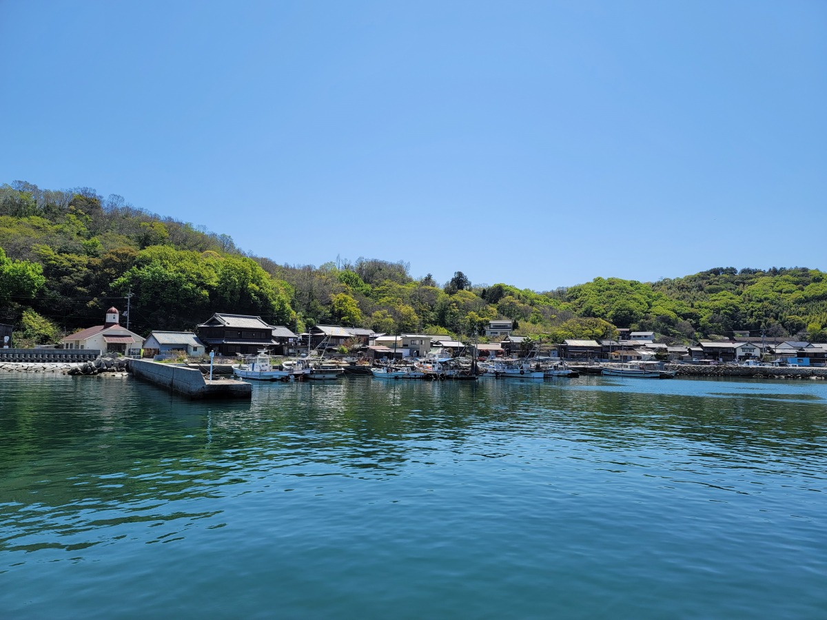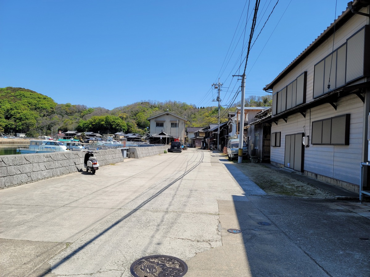 明治時代から漁村として栄え、当時の漁村特有のたたずまいを残す真鍋島。船板を張った家屋や石積みの防波堤などは、古くからの漁村風景を感じさせてくれます。