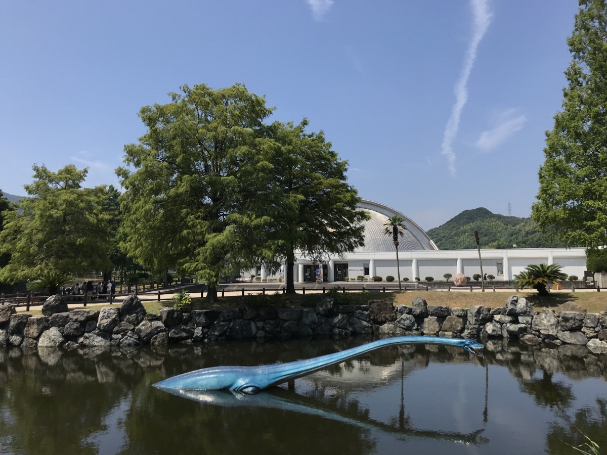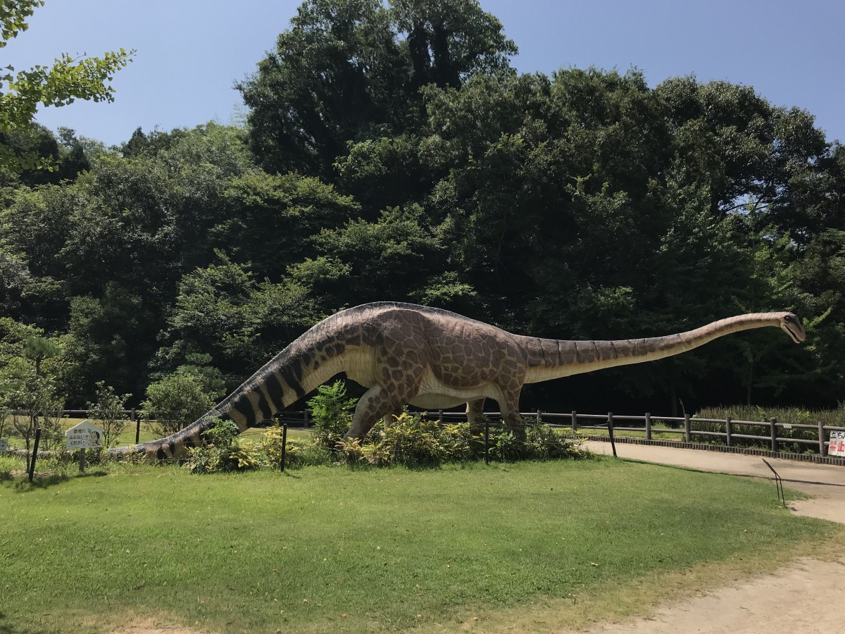 カブトガニ博物館の敷地内にある公園。学術監修を受けた実物大の恐竜が7種8体展示されています。まるで恐竜時代にタイムスリップしたような気分が味わえます。