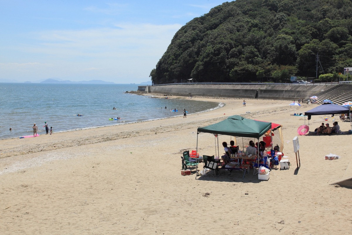 瀬戸内海国立公園に面し、眺めの良いこの海岸は、道路に隣接した便利な場所にあるため、海水浴シーズンには子供連れの家族からお年寄りまで大勢の人で賑わいます。