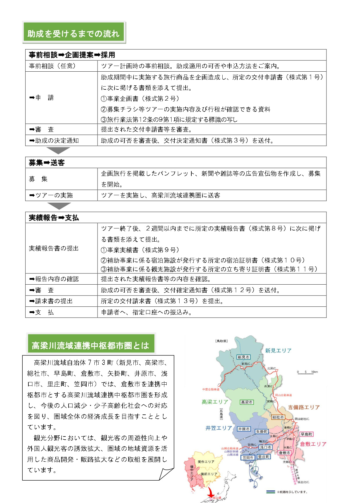 • チラシやWEB等の広報媒体に「高梁川流域観光振興協議会助成事業」の文字を記載すること。