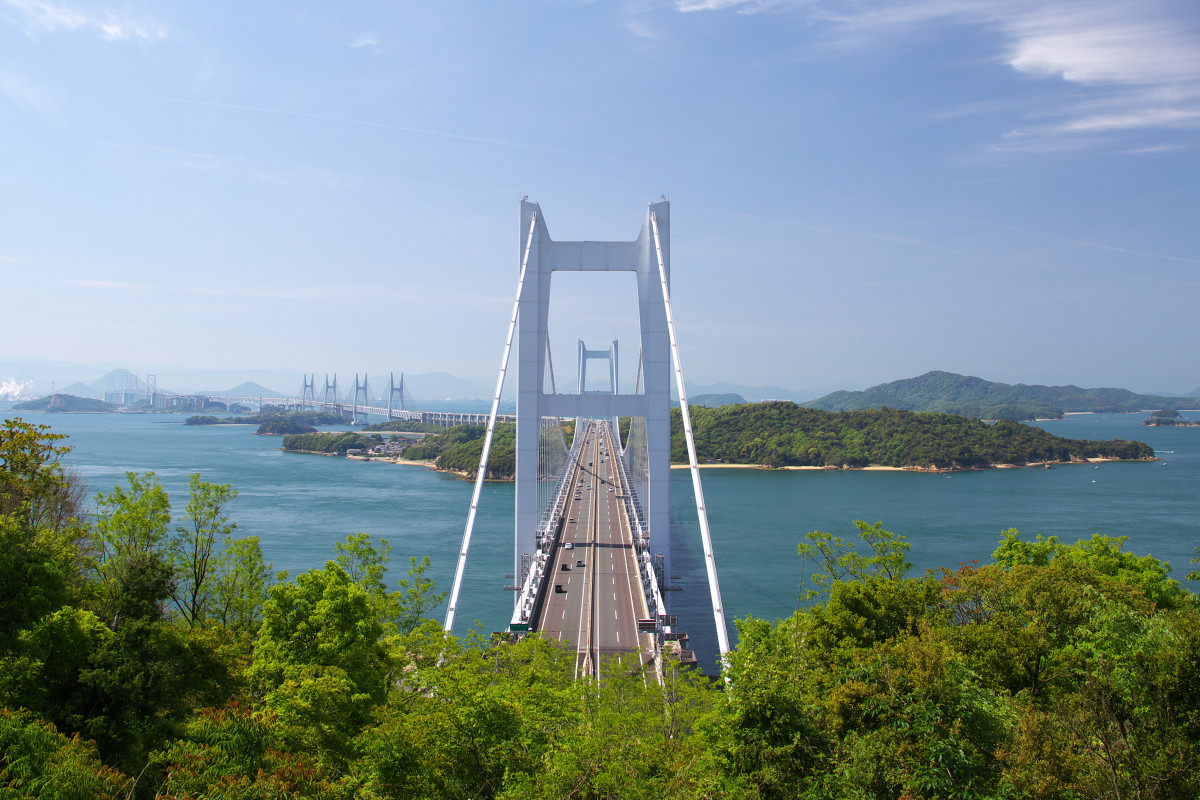 日本で最初に国立公園に指定された瀬戸内海国立公園。その島々を結ぶように建設された瀬戸大橋は、全長約9.4kmで鉄道道路併用橋としては世界一の長さを誇ります。橋がライトアップされると、優雅でロマンチックな雰囲気。また、遊覧船などが運航し、橋の下からダイナミックな姿を眺めることができます。人気の景勝地でもある鷲羽山からは雄大な瀬戸大橋と大小50余りの多島美を楽しめます。
