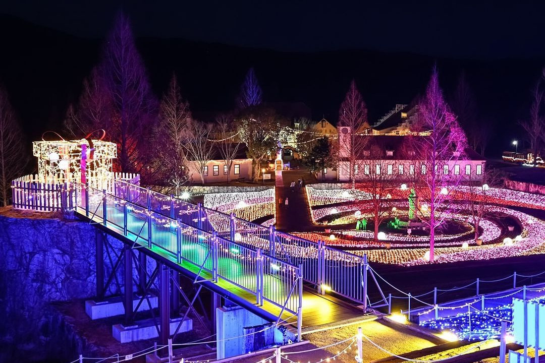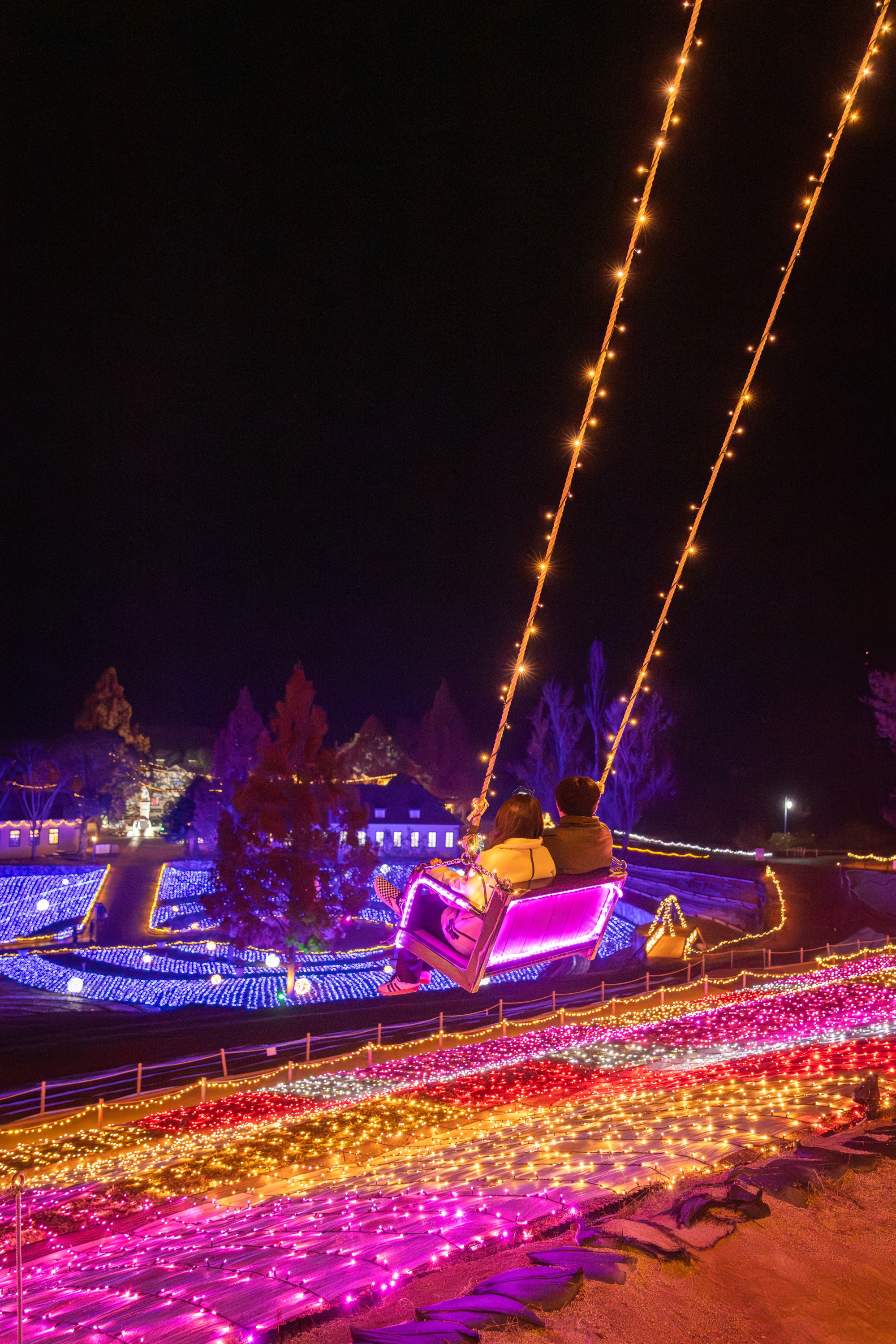 「おかやまフォレストパーク ドイツの森」では、イルミネーションを2025年11月22日(土)~2026年2月15日(日)の金・土・日曜日、祝日と年末年始の期間中開催。園内はおよそ30万球のLEDの装飾が施され、花のモニュメントやプレゼントボックス、光るチューチュートレインや大きな森のブランコなど、写真映えスポットが充実。幻想的な世界をお楽しみください。