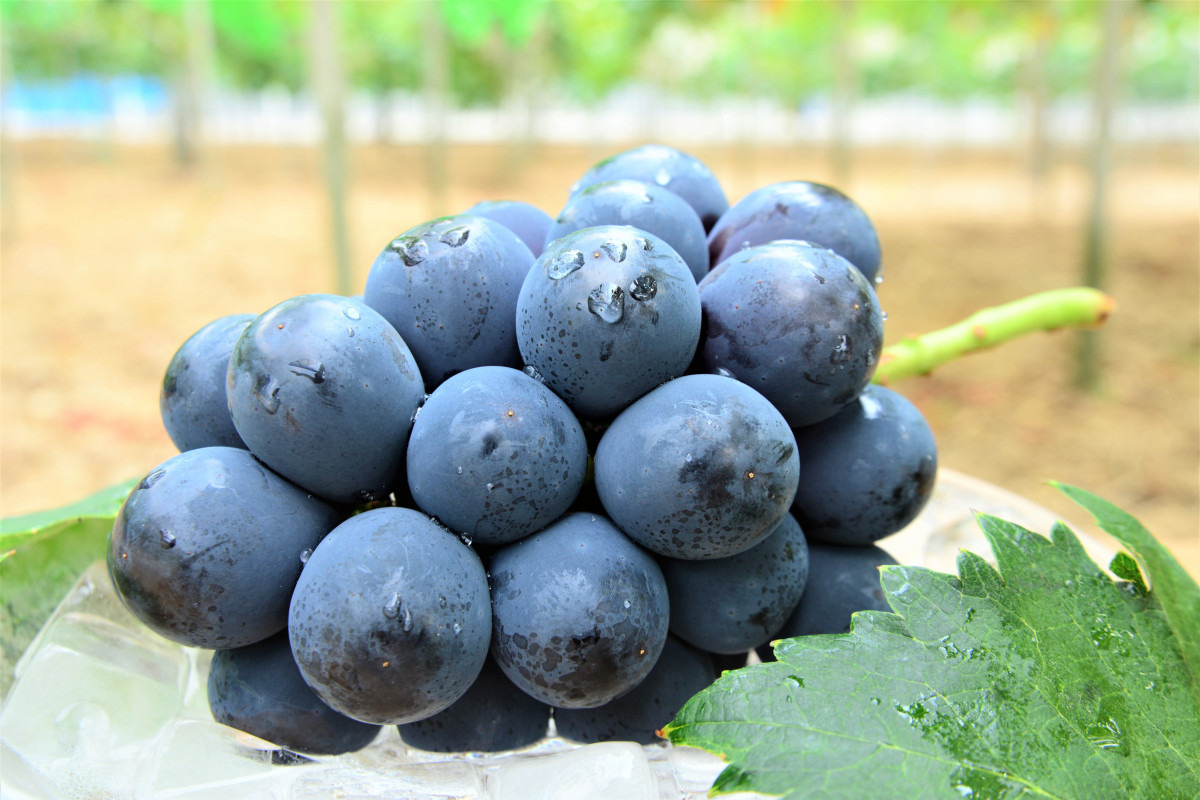大粒で上品な甘みのピオーネは、爽やかな香りと酸味、スッキリとした味が人気の新見市特産のぶどうです。