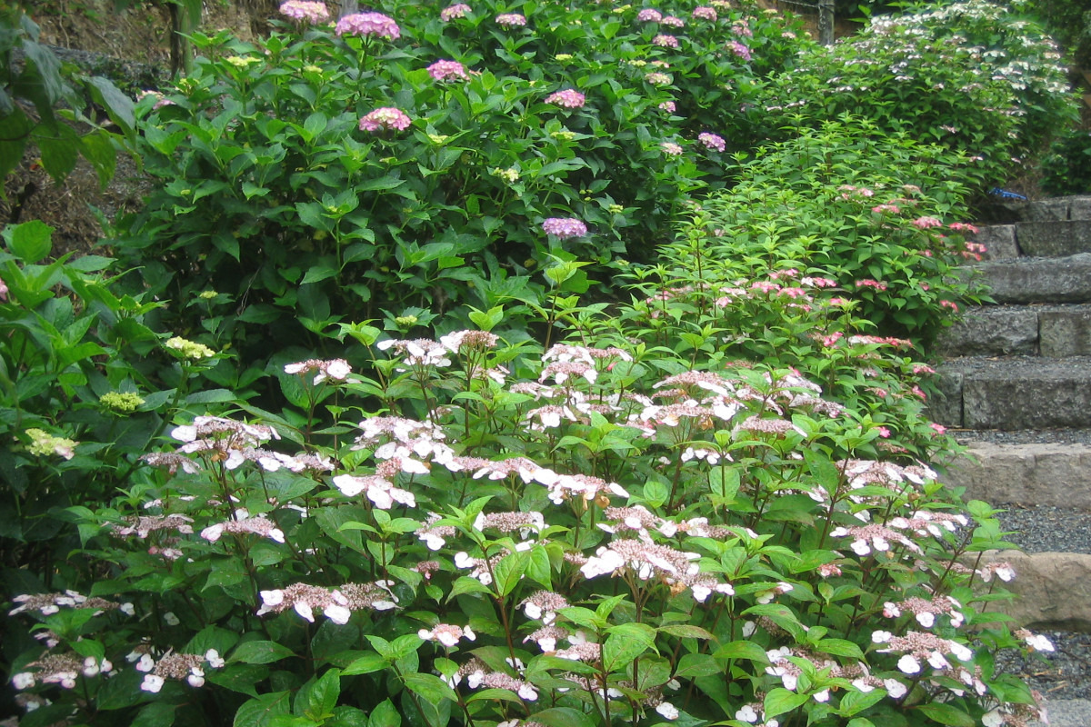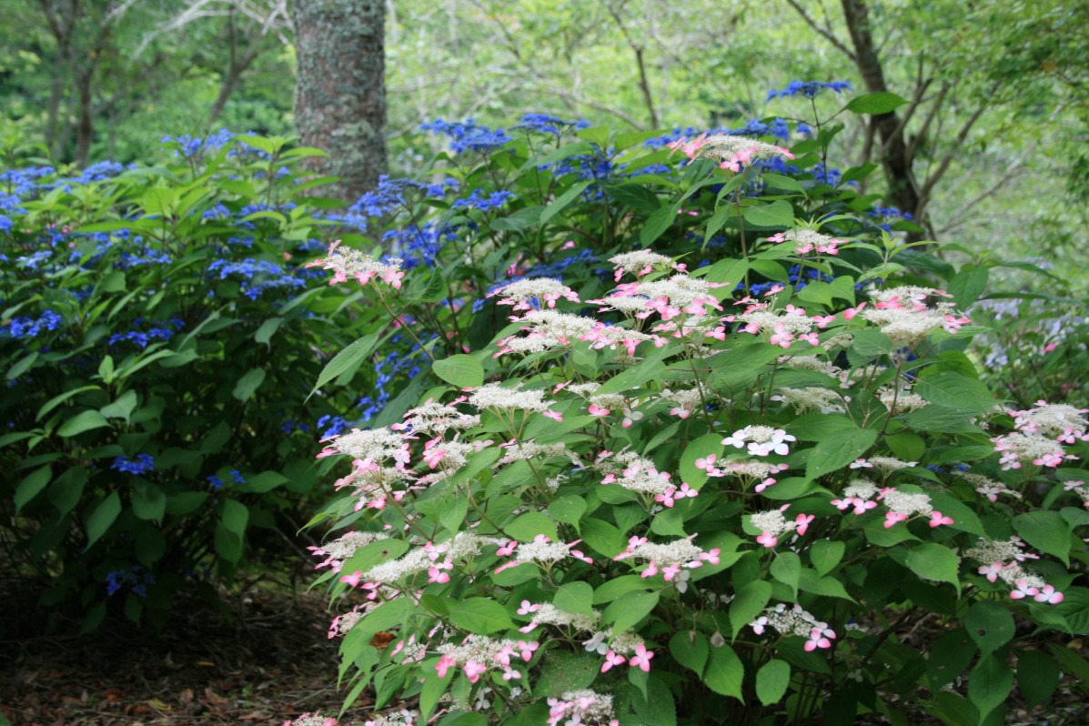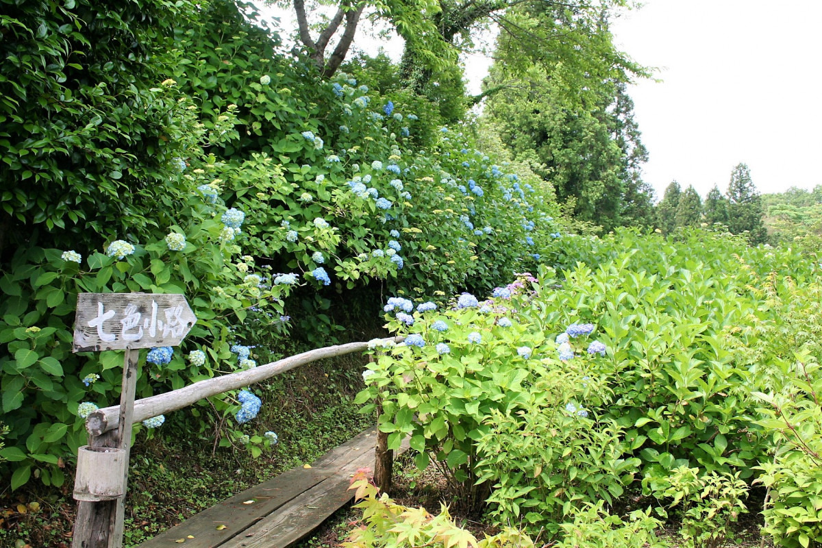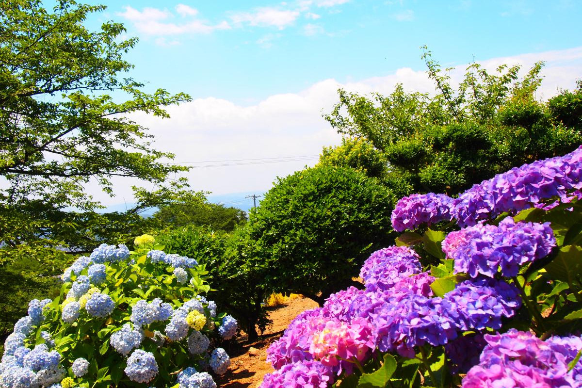 標高400mの場所にある様々な花を楽しめるスポットです。あじさいは圧倒的な数を誇り、なんと約100品種、20,000株! 20haの敷地内を散策しながら、多彩な色や種類のあじさいを鑑賞できます。