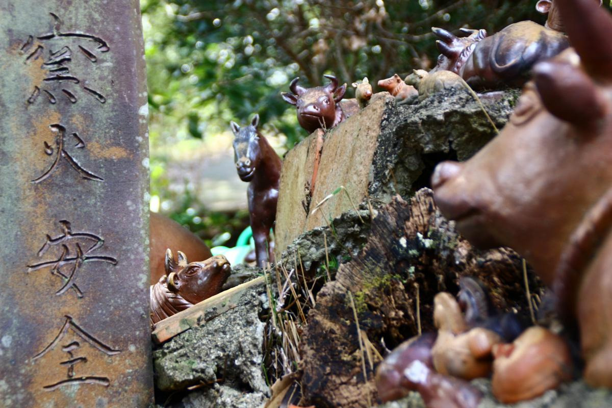 - JR伊部駅から徒歩7分の「天津(あまつ)神社」。備前焼の里らしく、神社内の敷石や狛犬、絵馬までも備前焼でできています。