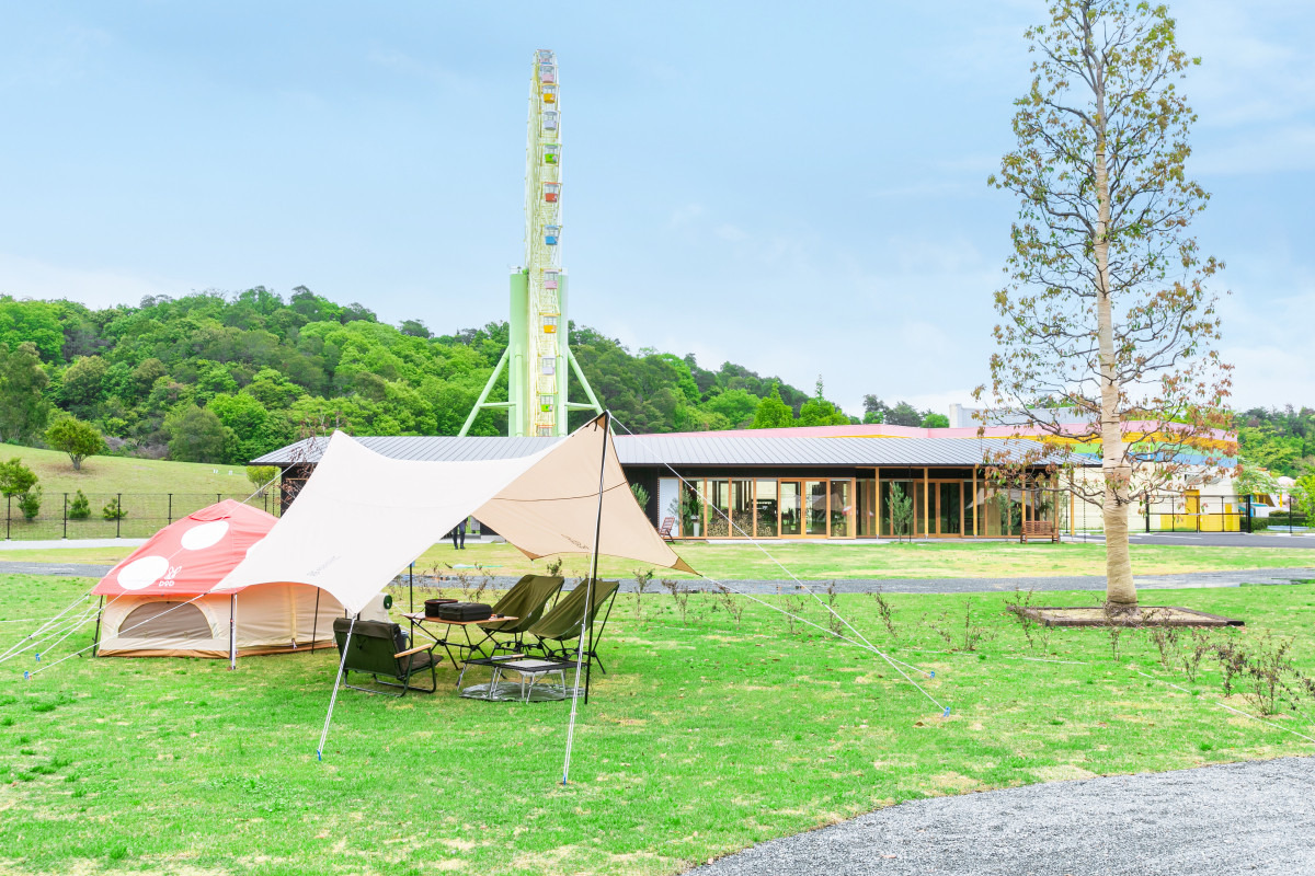 王子が岳や渋川海水浴場、宇野港など玉野市の観光スポットにも近い、おもちゃのテーマパーク「おもちゃ王国」に隣接したキャンプ場です。140平方メートル以上ある広々とした区画サイトには電源付きのスペースもあり、車の乗り入れも可能です。キャンプセットのレンタルや消耗品の販売はもちろん、スタッフが常駐する管理棟に、ウォシュレット完備のトイレや24時間無料で利用できるシャワールームなど、充実のサービスと設備で初心者や子ども連れでも安心してキャンプを楽しめます。さらに、キャンプ利用者には「おもちゃ王国」の2DAY入国チケットがセットになり、チェックイン、チェックアウト後にたっぷり遊ぶことができます。