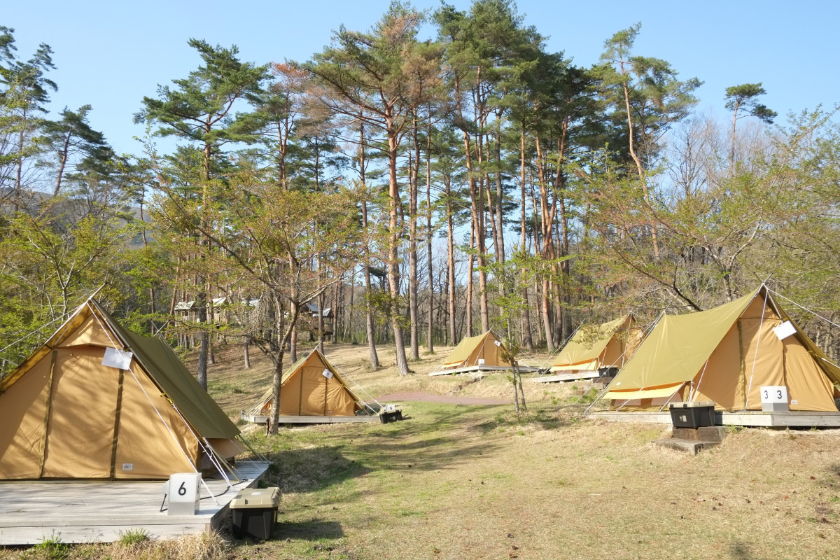 常設テントやテントの貸し出しがあるキャンプ場で、初めてでも気軽に手ぶらでキャンプを楽しめます。