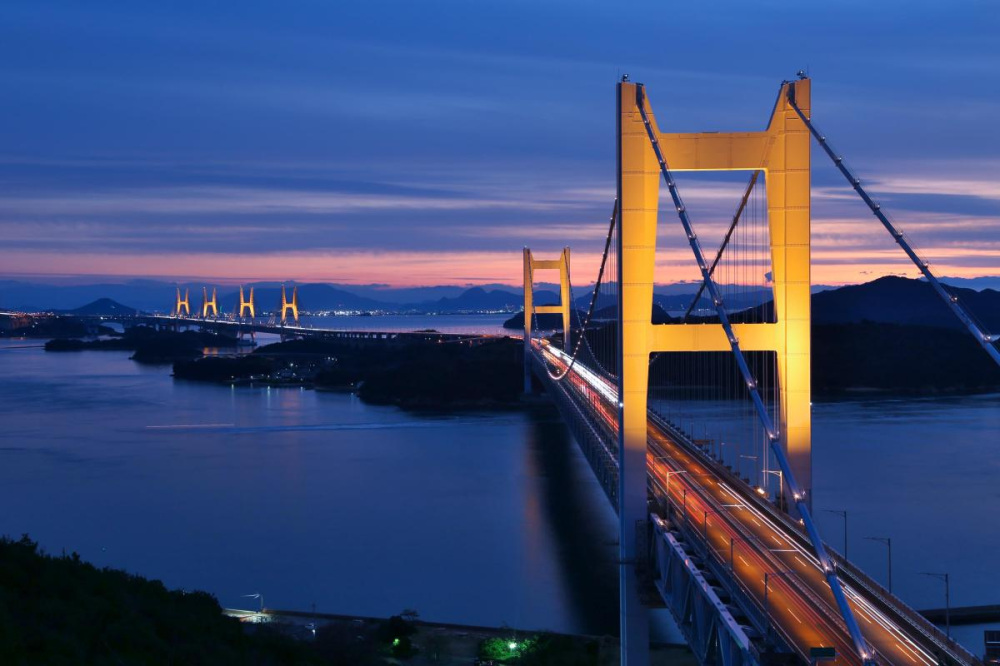 昼間は車の窓を開けて潮の香りを感じながら、また、夕方は夕日を追いかけながら走ればロマンティックな雰囲気に。ナイトドライブでは、月に照らされる海を横目に走ったり、週末は瀬戸大橋のライトアップも楽しめます。