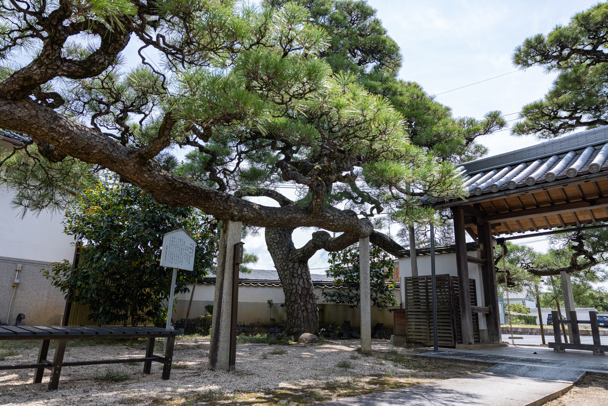 本陣通りから少し離れた「専教寺」の境内で迎えてくれたのは、推定樹齢300年の「臥龍松」。