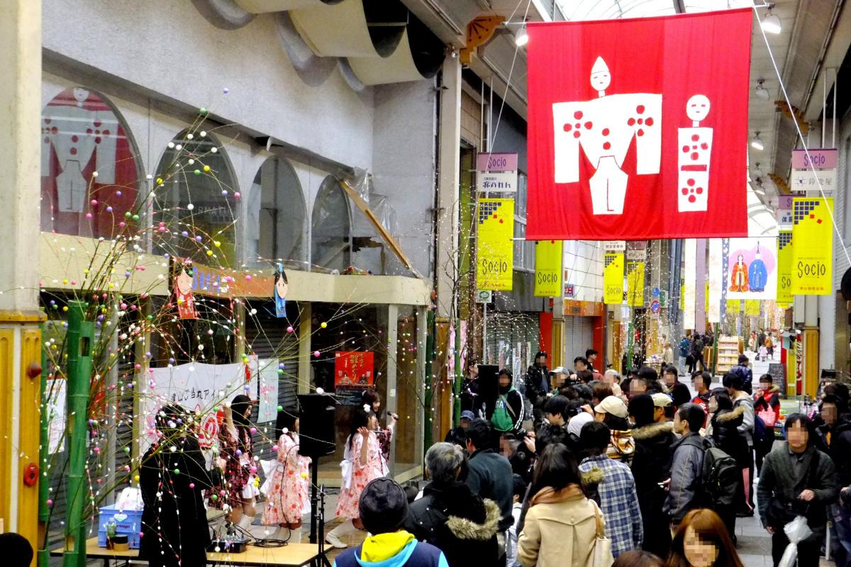 御殿町の白壁の古民家が並ぶ太池邸を中心に、中央商店街・夢市場・御殿町センター一帯に、江戸時代から現代までの雛人形、掛け軸などを展示。時代ごとに変えてきた様々な人形の表情を楽しめます。