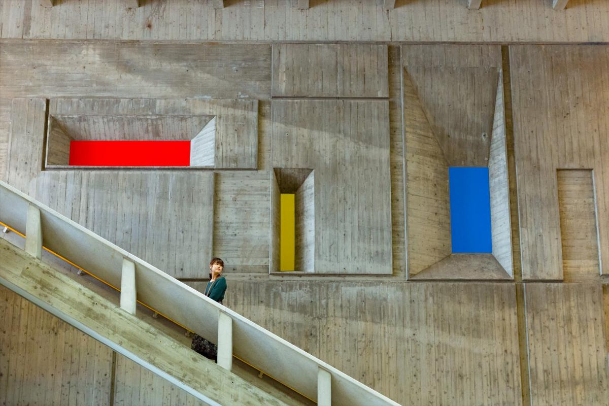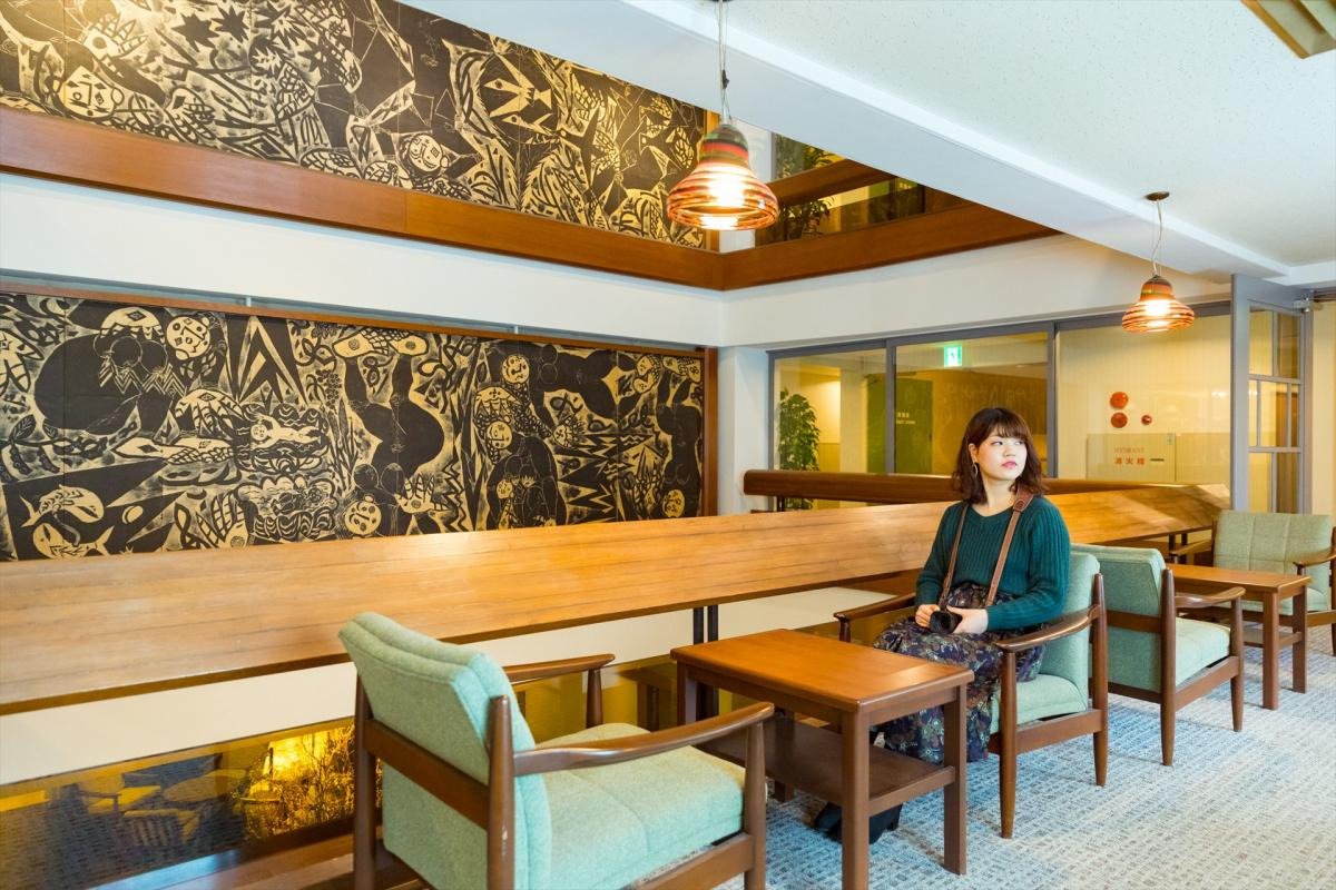 世界的巨匠・棟方志功が手がけた世界最大の木板画が吹き抜けに展示されており、1階やロビーや2・3階の休憩フロアからも鑑賞することができます。