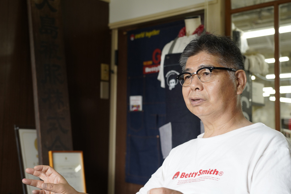 父・邦雄氏の頃はジーンズはまだ若い産業で、繊維産業の浮き沈みの激しさを肌で感じていたという大島さん。しかし、親の仕事を継ぐのは当たり前だと思っていたそう。大学卒業後は「問屋に行けば小売業やメーカーのことがわかる」と経営コンサルタント会社勤務の先輩に勧められ、総合問屋「宮入」に就職。そこで外側から繊維業界のことを学んだといいます。ベティスミスに入社したのは平成元年。本格的にジーンズ産業に携わるようになりました。「うちは工場を所有しているので、縫製や裁断などの行程もすべて自前でできる。素材の調達ルートも確保しているので、希望を反映した商品をスピーディーに提案することが可能でした」。大島さんはそれまで作り手主体で製造販売していたものを小売店(消費者)の意向を聞き、それを取り入れた商品を提案するなど新しいスタイルを生み出しました。それこそが、今では当たり前に耳にする“営業企画”です。「この言葉、私が言い出したのが最初じゃないかな」と回想します。
